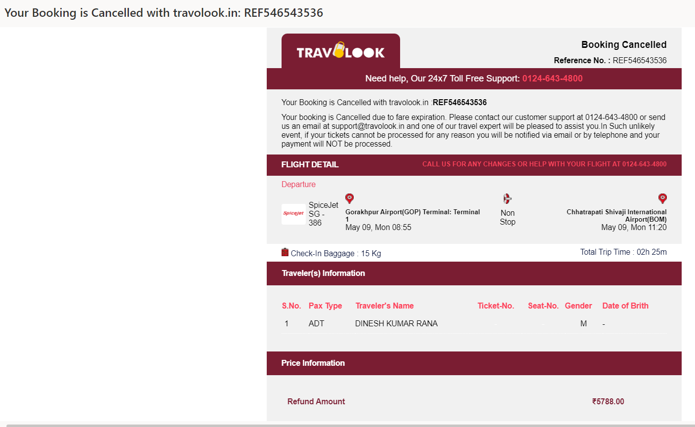 Tried booking Air ticket from Travolook website on 26th Apr 2022 from Gorakhpur to Mumbai for dated May 09 2022.