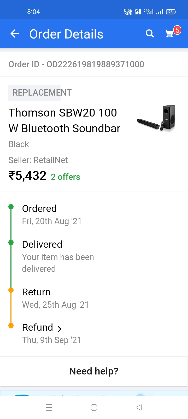 Product Name: Thomson SBW20 100 W Bluetooth Soundbar.