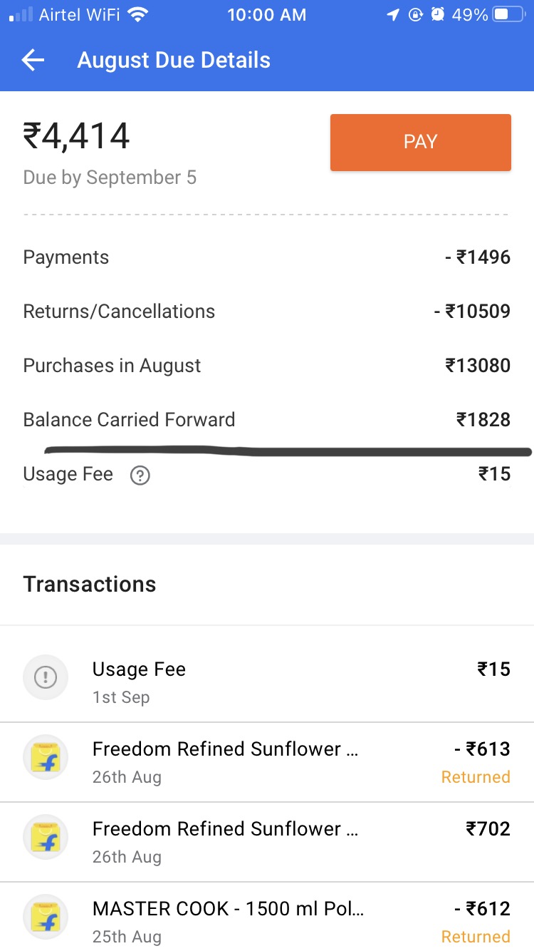 Flipkart pay later services has doing money laundring services by adding extra amount has balance carried forward from the previous bill, although previous bill was fully paid then also they are adding the balance carried as they taking extra amount from the customers.