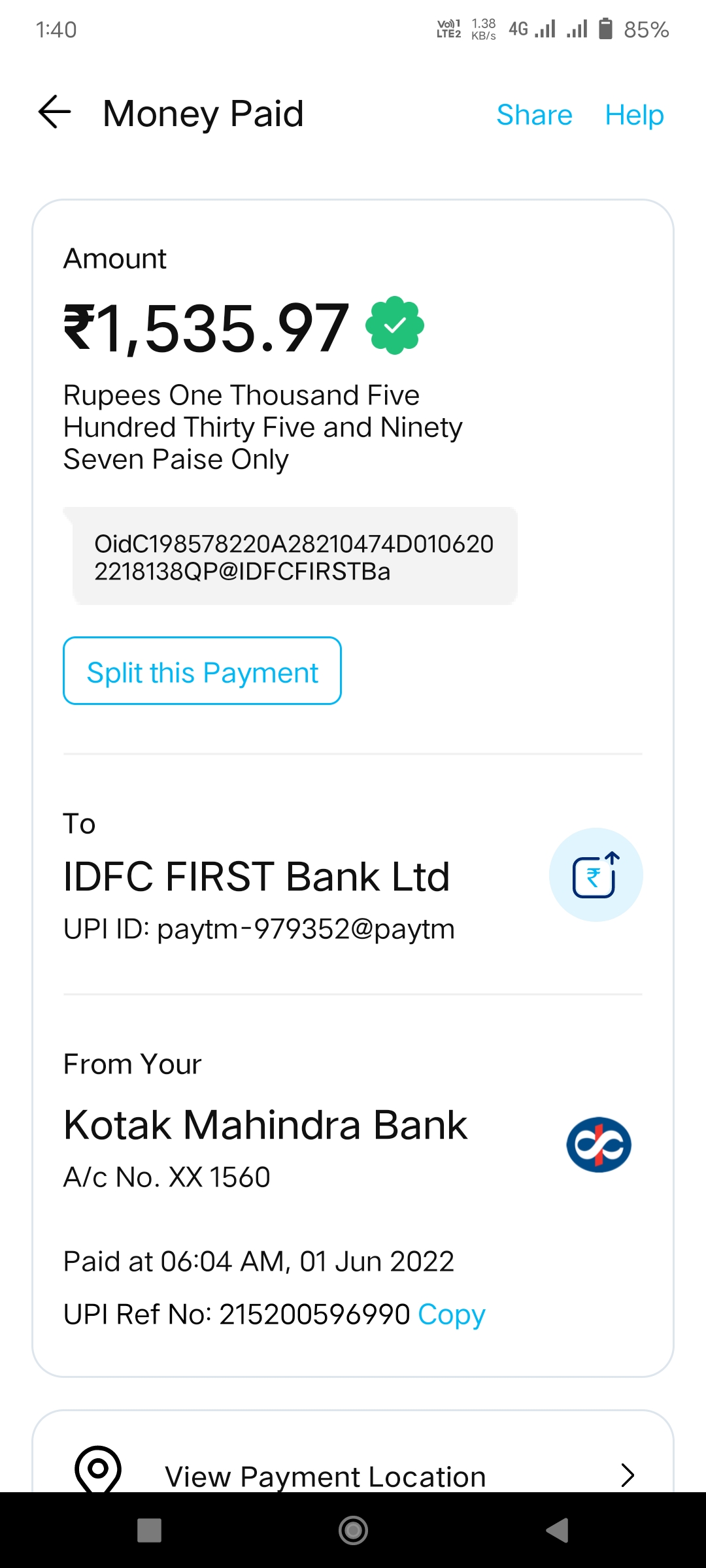 I use Flipkart pay letter ₹ 1538 then pay 01-06-22 but so far there are over due I complain Flipkart care but not resolve problems