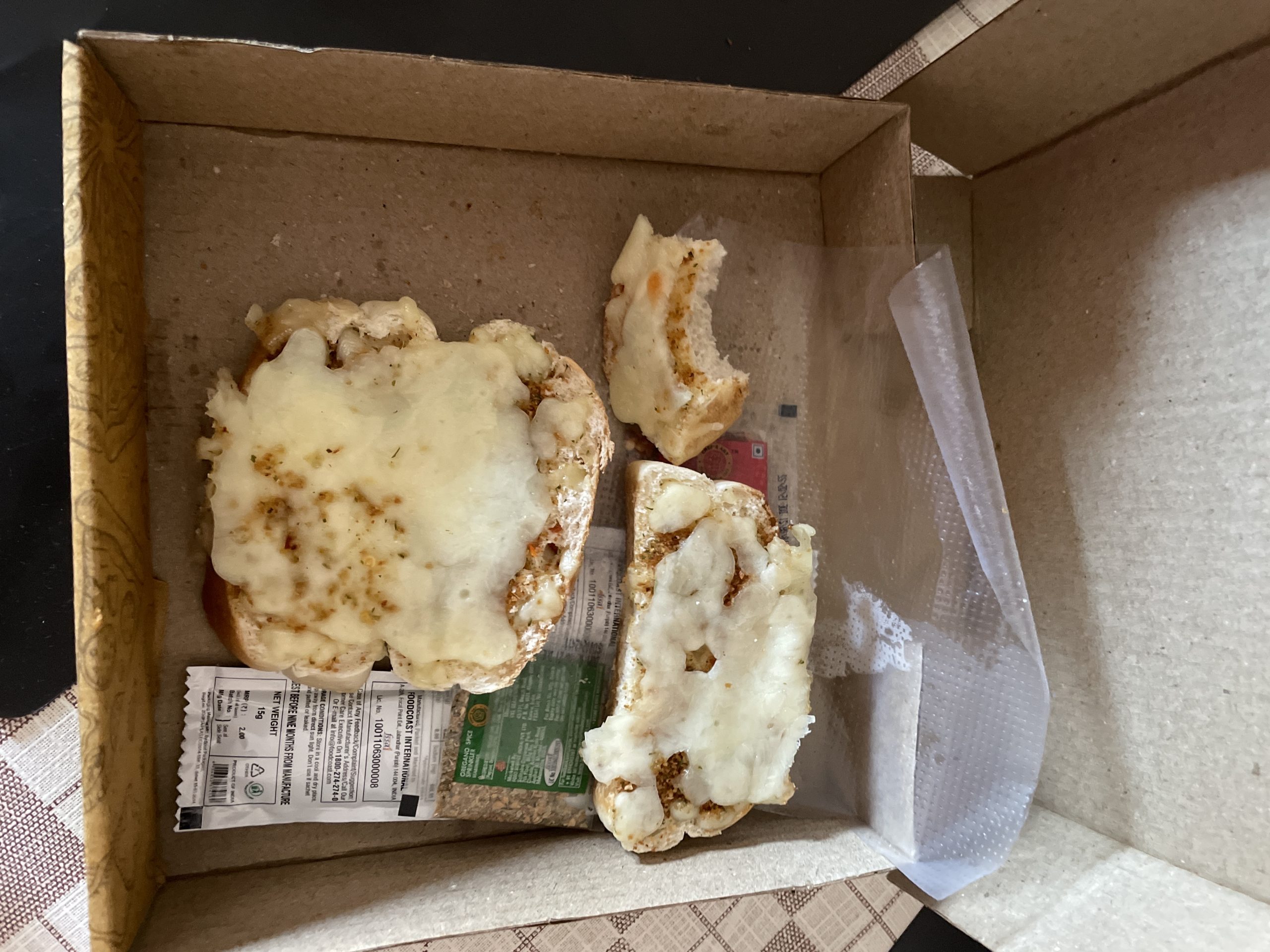 I ordered the garlic bread and that one is so bittery i dont know why the bread is unhygiene or what.
