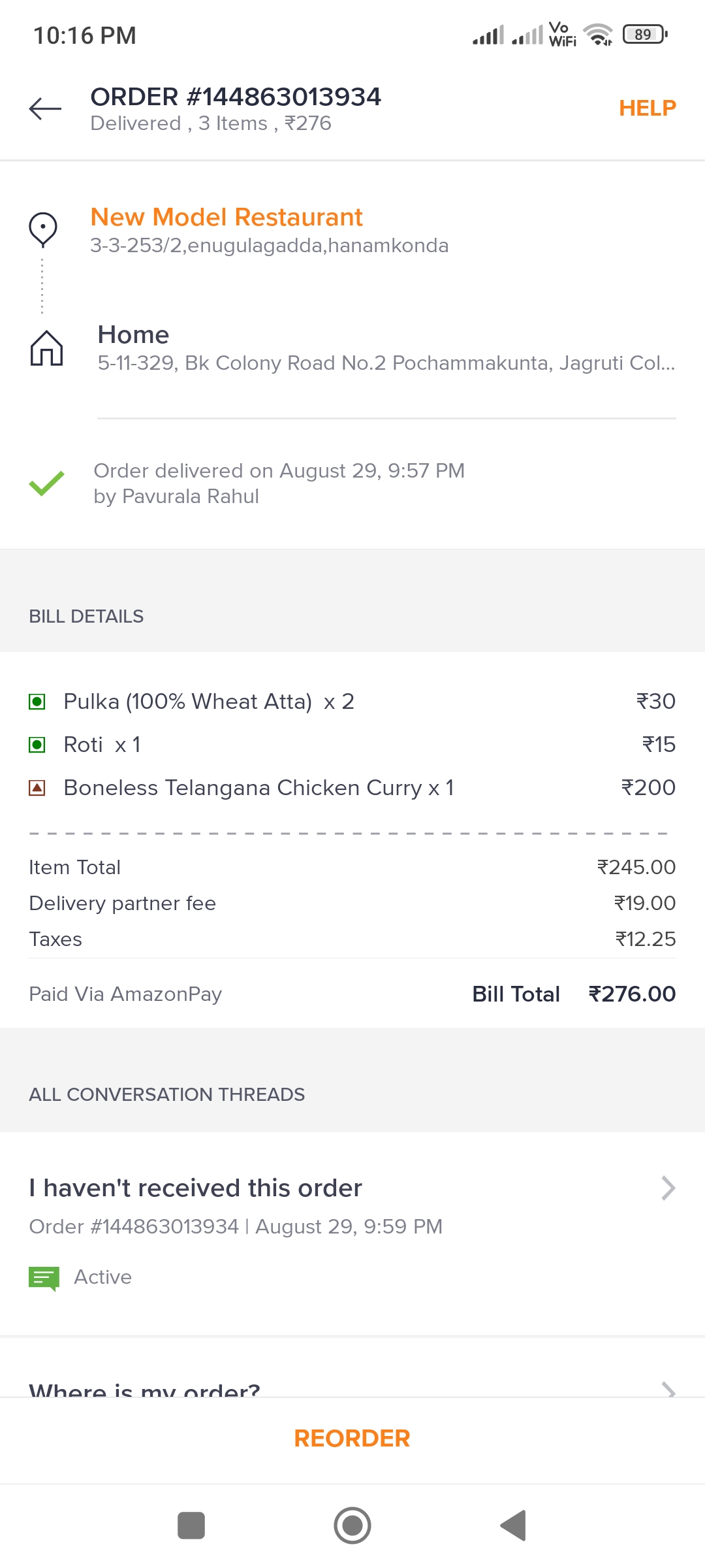 I am place order 9.20Pm on 29.8.22 but 9.59pm i got mesaage your order has been successful delivered