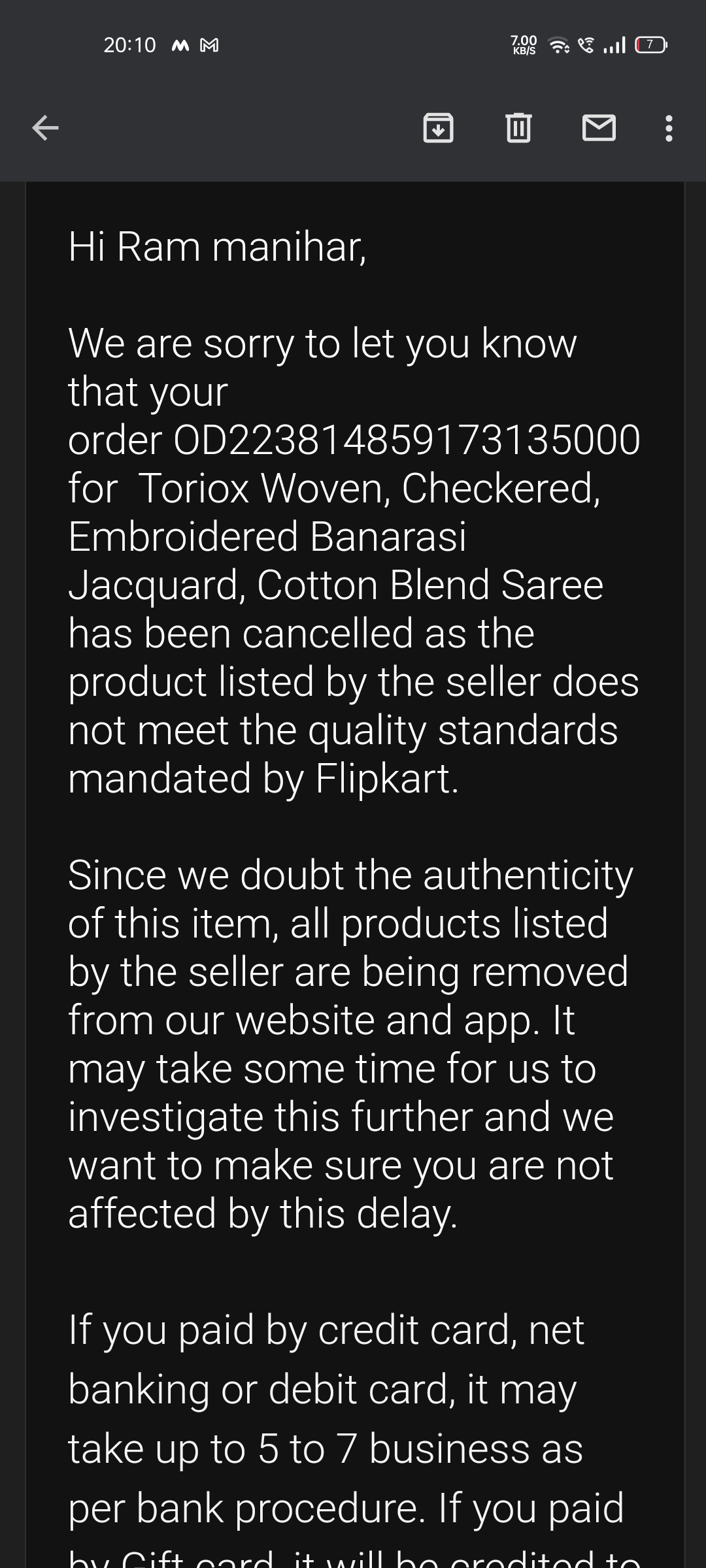 And many product cancelled by seller