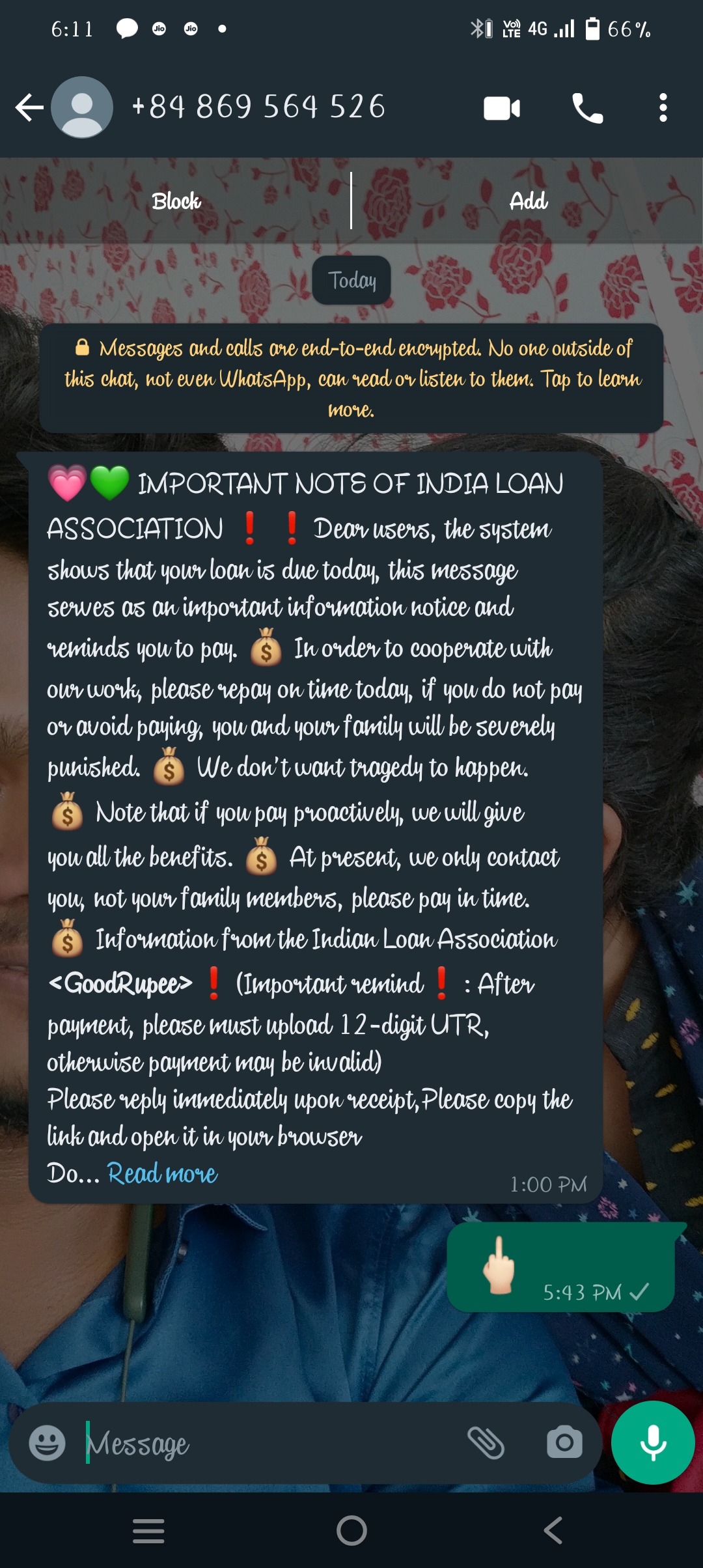 I have get whatsapp sms diffrent type of number for pay my loan dues even I never take any loan from rupeekey and Indian loan association they threat me several times to take action against me and my family members and leak my private data
