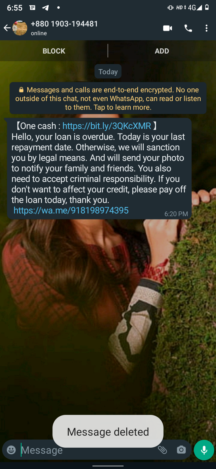 I haven’t taken any loan from the app called one cash and they are keeping messages to pay the loan