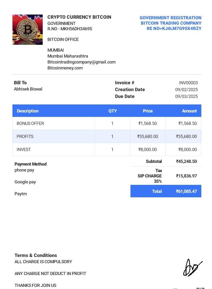 Sir telegram pe ek msg aya link milaa ki 3000 add Karo 12000 milega fir WhatsApp pe meine Kiya fir msg aya ki usne 8000 galti se lagaa diya aur 5000 magne lagaa fir bola ki sip charge 15000 dena padega fir tumhare account mein paise credit hoga