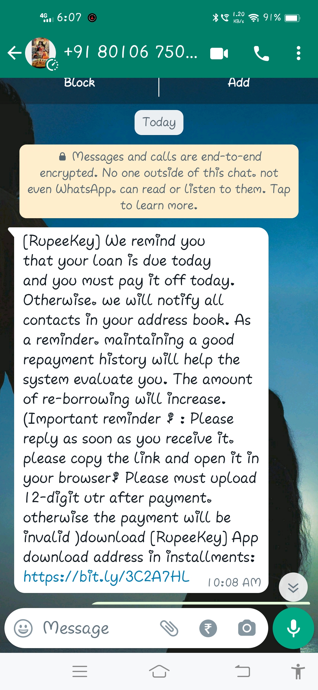 Getting repeated whatsapp message from some applications like rupeekey, cash wallet, front loan, taka pot, good rupee, samll credit,Hugo cash regarding i have loan i have to pay there is overdue if you don’t pay we will call your contact list and inform… But i didn’t take any loan and i didn’t receive any money from these applications…. Kindly please take strict actions on these applications.. i am so scared by receiveing these type of messages.. please ban these applications from app store… I don’t know how they get the contact number and these type of messages please help me.. i am worried about these type of messages and scared