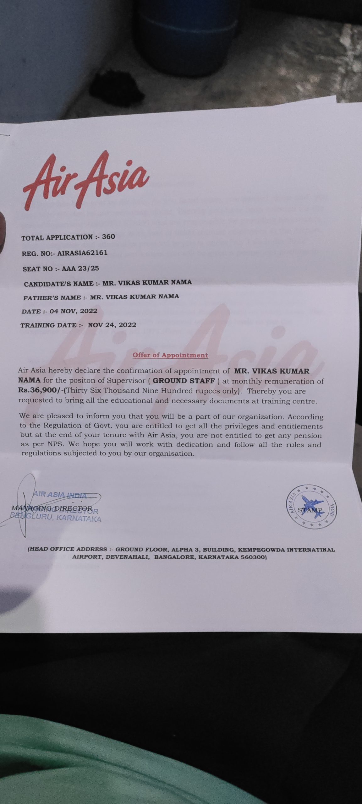 One call found from Air Asia and it tells about given job and do fraud with me amount of 1550rs