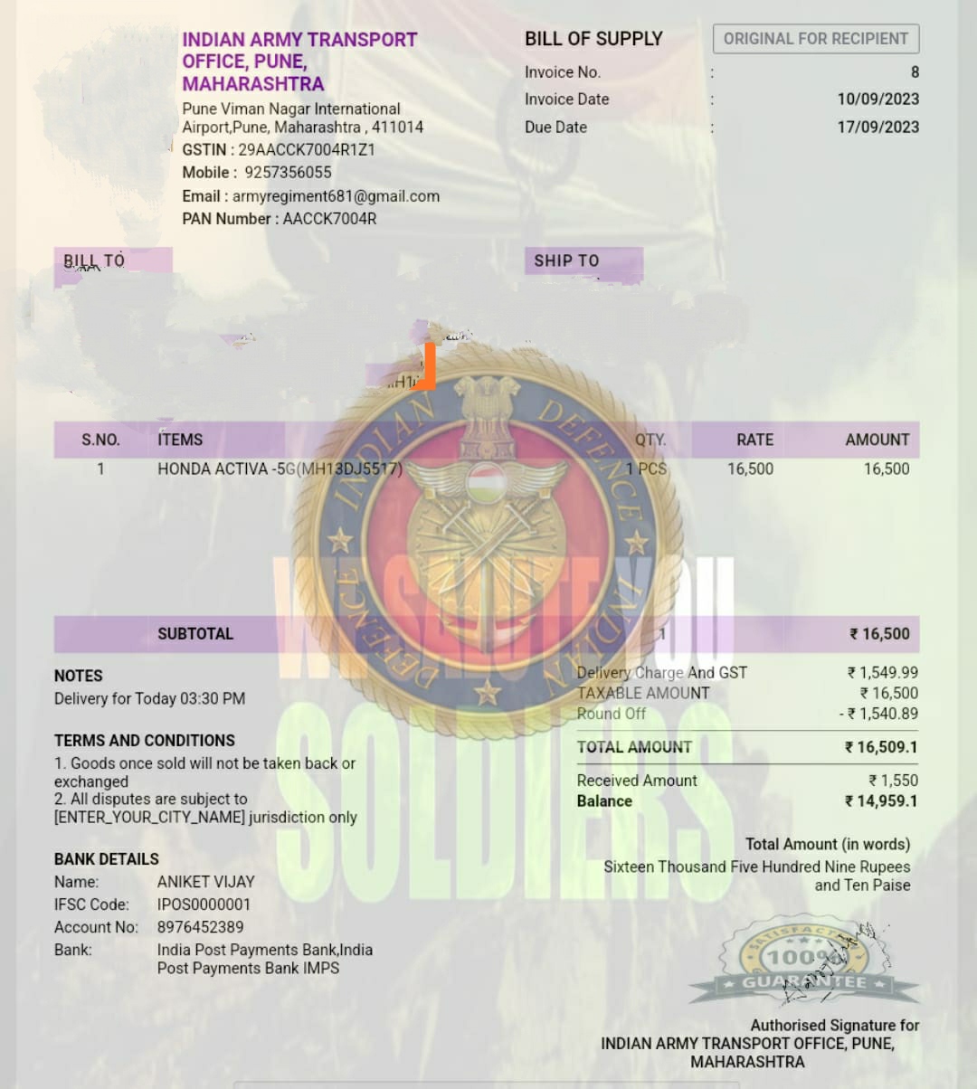 मेरा नाम महादेव है मैंने quicker पर गाड़ी देखी थी गाड़ी वाले से बात करी तो बोले आर्मी से हूं आप मुझे ₹1550 ट्रांसफर कर दो मैं आज गाड़ी निकलवा देता हूं, बाद मे बोल रहे हैं ₹ 9150 और ट्रांसफर करो. ना मुझे गाड़ी दिखा रहे हैं ना कुछ बता रहे हैं, (उसका नंबर है 9257356055 और कोरियर वाले का नंबर 9749018654 था. मैने 8373874255@paytm इस आयडी पे 1500 रू चंद्रादेवी नाम पे ट्रान्सफर किया था