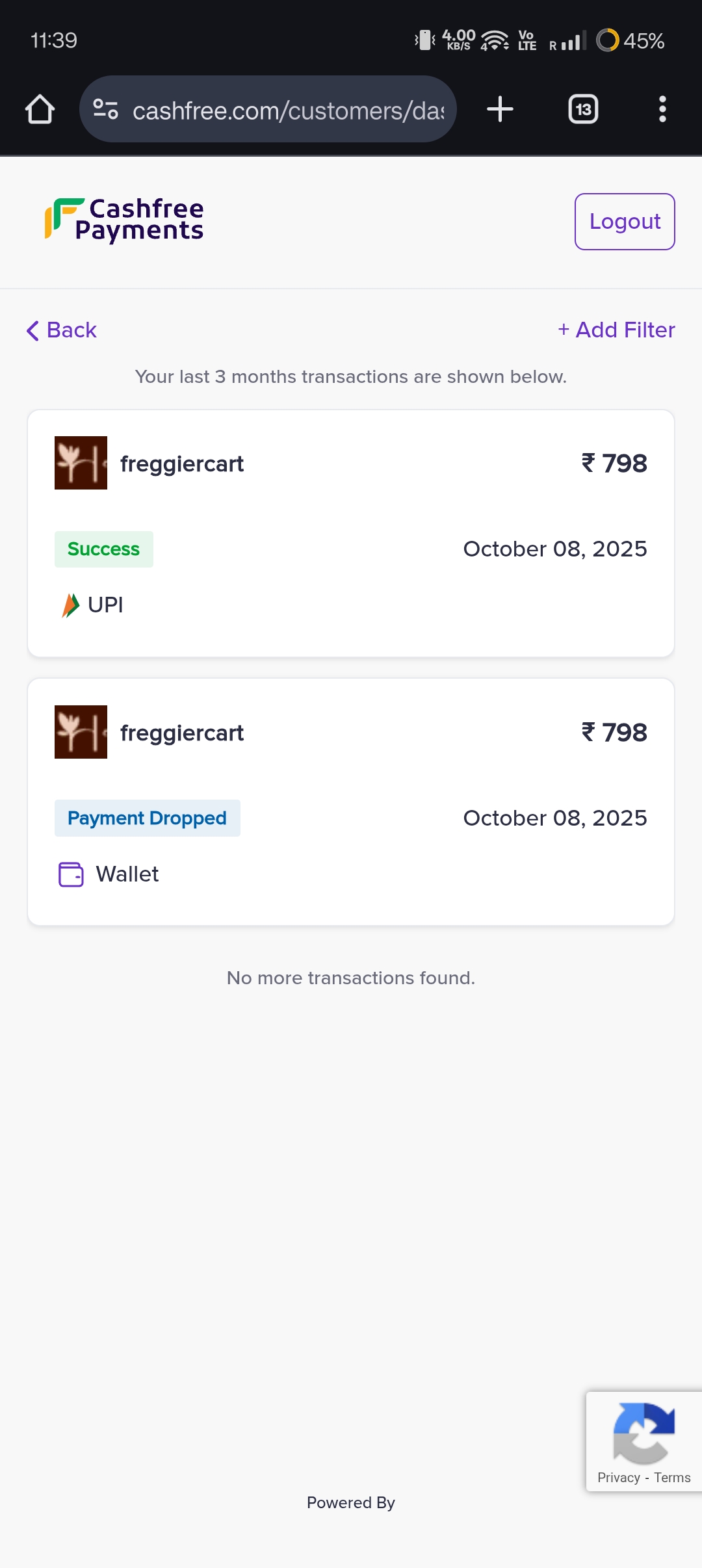 | Name(s) of companies complained against | https://freggiercart.in/ |