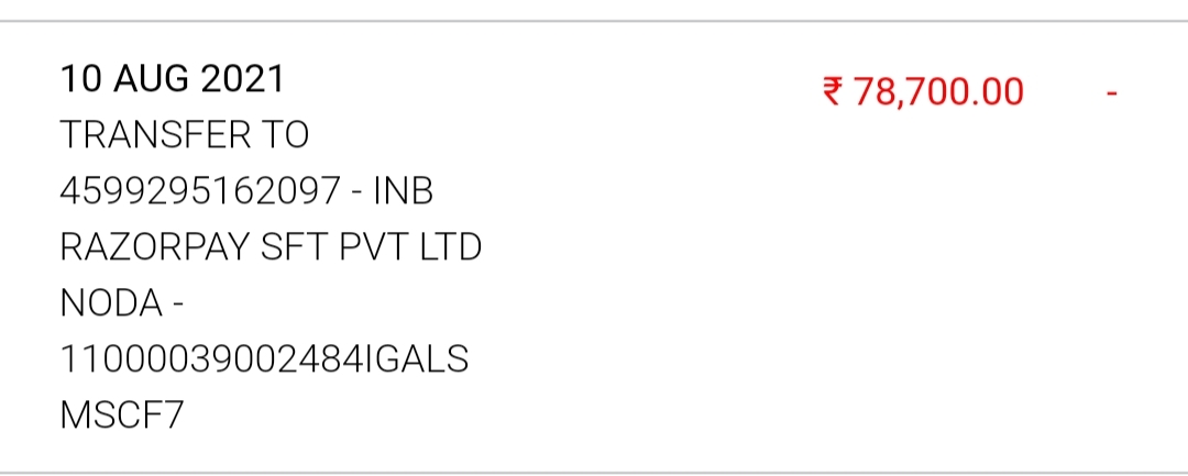 I was playing on HPZTOKEN app and I paid 78700 on 10.08.2021 through RAZOR PAY SFT PVT NODA and the company has lost forever. I want my money refunded back as it was fraud website dealing with RAZORPAY