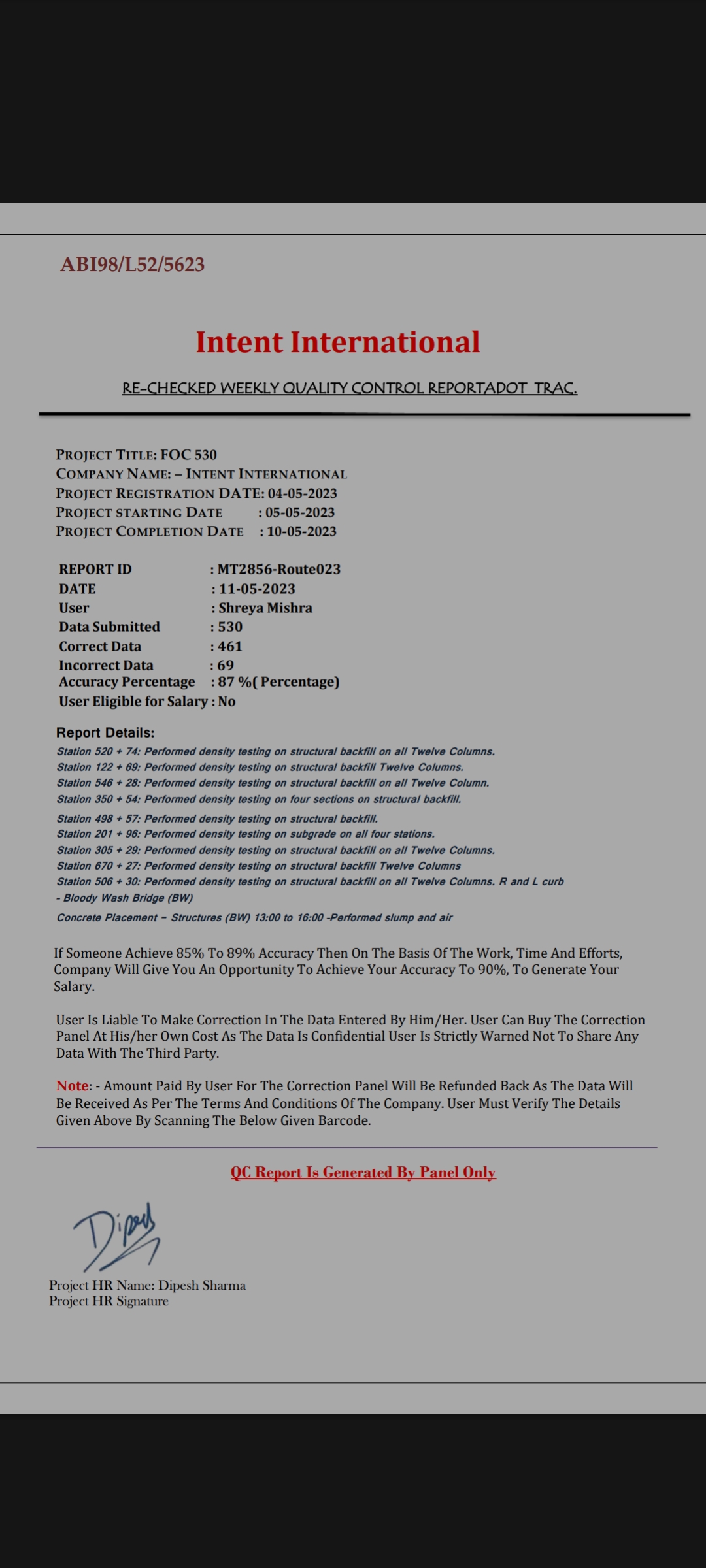 Sir ye ek trap hai in sab ka humara fayda uthane ke liye…ye log work se phle details dete samay sirf chetavani dete hai..ye nhi batate ki kya mistake nhi karni hai aur jab call kro puchne ke liye to call nhi uthate…phir galat report banate hai taaki inko paisa na dena pade aur ye humse paise loot sake…. I am 100% sure sir Maine 25-30….isase jyada form galat nhi bhare hai… I am sure…. Aur us agreement me saf mention hai ki 530 me 477 correct hone chahiye… Yani ki 53 galat ho sakte hai. Us hisab se maine bahut kam galat kiye… I am eligible for salary…. Ye log ab galat report dikha rahe ki maine 69 galat bhare hai… Aisa nhi hai.. Maine har ek form count kiya hai khud se…. Plz give justice sir… We want justice…. Take a strict action against Intent international company.