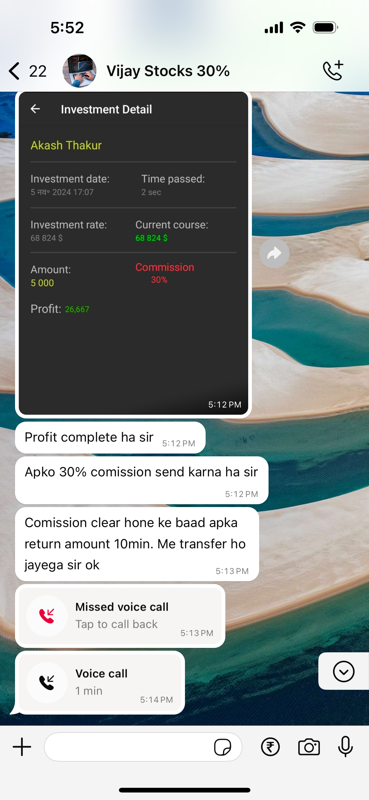 Hello, good evening, respected as I am resident of India and nowadays, there is a market of stocks and shares which is in trending and some of the people are making money by using some tricks. For example, I was added in a group and the application called telegram. Then secondly they showed some proofs like they transferred someone ₹80,000 and many more thousands were there. Then they said if you invest your 3000, we will refund you 15,000 as your profit and you have to pay 30% commission from the profit till then all things wait smoothly and the evening time when I ask about the market and they told me that here is your profile and I am sharing the screenshot with you. They told me that your market is ready and you have earned about 26,000 from your invested money but you have to pay us a commission. Then I said that you can cut it from my profit and return it to me as they said to me before, but they said no, you have to pay ₹8000 separately because the team wants to see a commission, and then after that we will approve and many more things he said he was stick to his point that pay my commission and take your refund money, and you have to pay right now, and we will transfer your money within 10 minutes, but I found something weird.