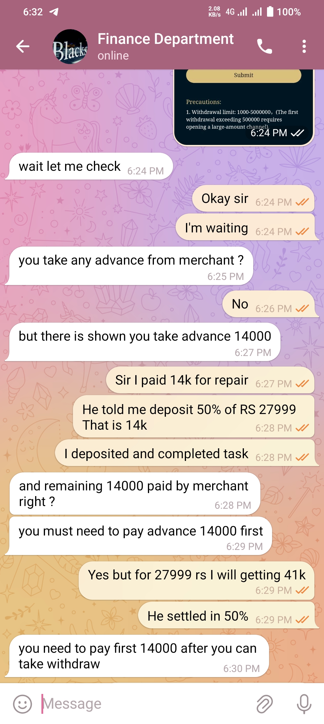 They said it’s a work from home job and u just want to complete tasks accordingly to them and some tasks are of investment like btc BTS etc crypto currency they repaid for some tasks but for final task they get huge amount from me but no refund till now and don’t replying also