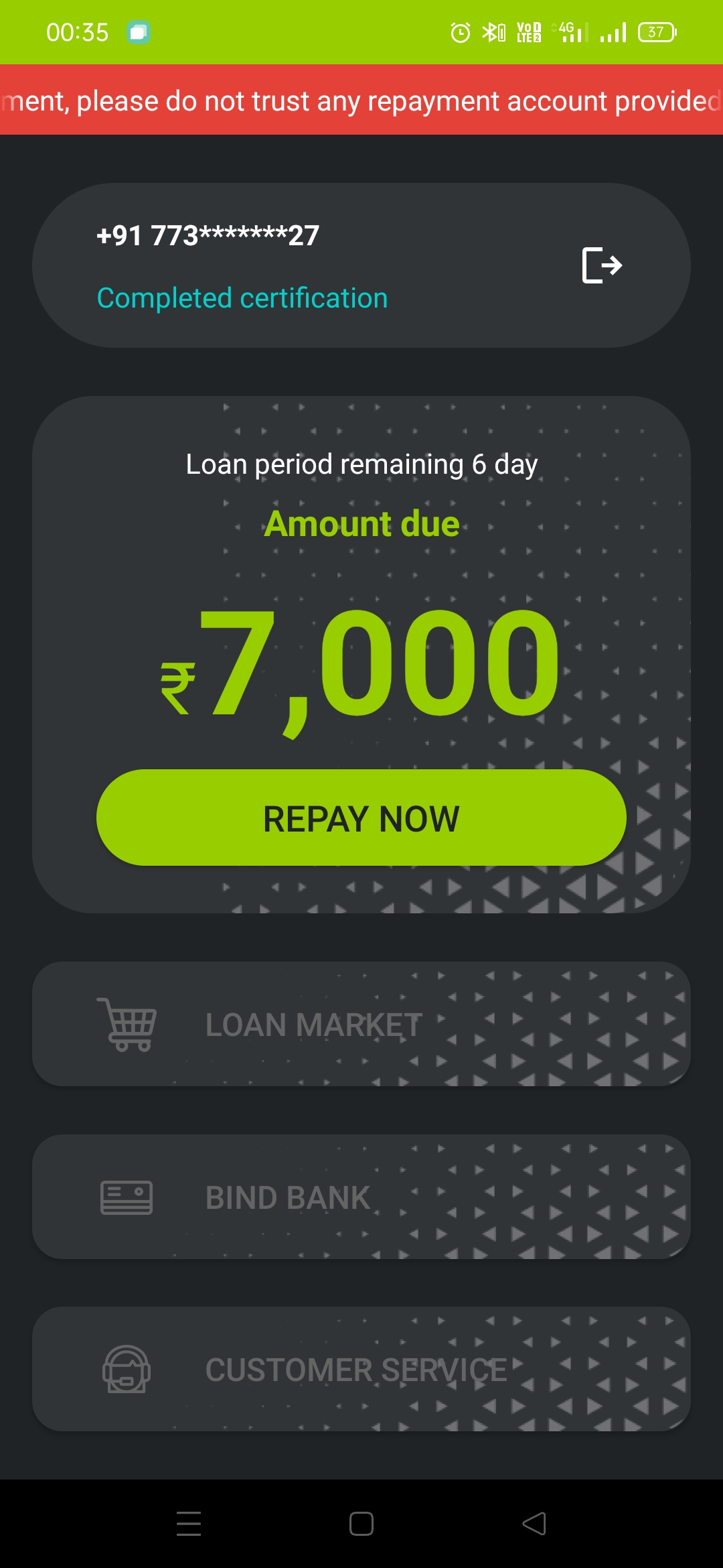 I have applied for loan but i didn’t get any amount from Doa cash but when i open app it’s showing pay loan / repayment in 6 days ? totally going fraud please take action on this..