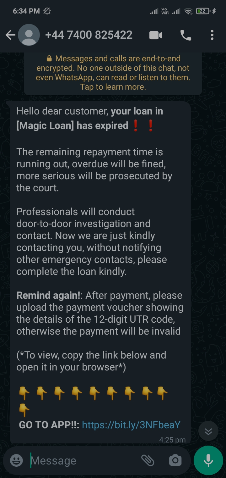 I didn’t borrow loan from magic loan app and luckyrupee app. They send message me to repay your loan. Please take action.