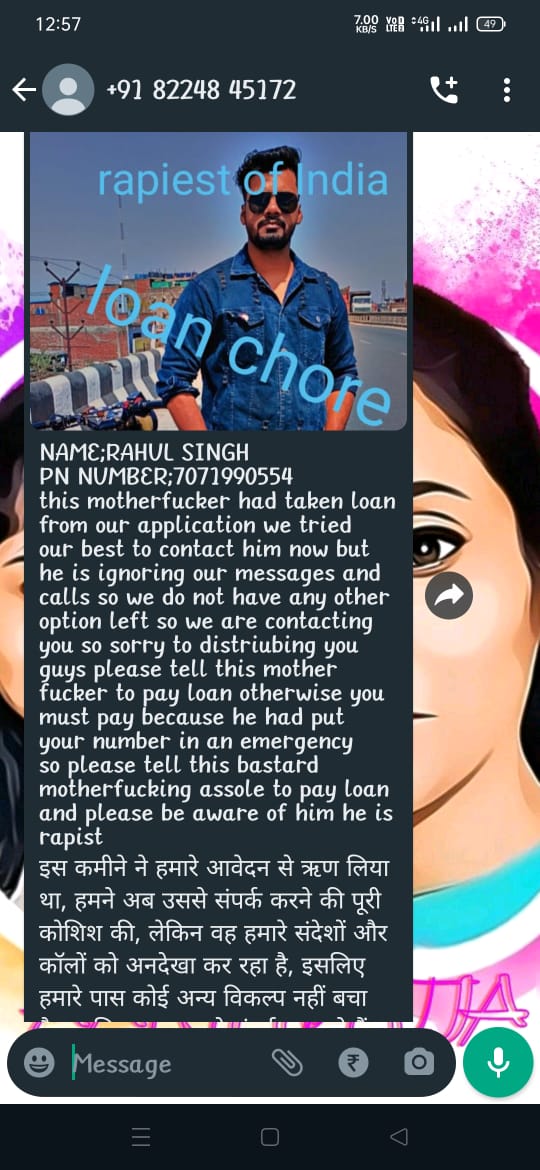 Ye app frod app hai inko police me dena chaiye enone lone to dia nahi upar se pese mang rahe hai contact no. Pe kuch bhi bake ja rahe hai ek no. Ke lutere hai ye call kia to reply bhi nahi dere de rahe hai to gali de rahe hai bat karne ka tarika bhi nahi hai