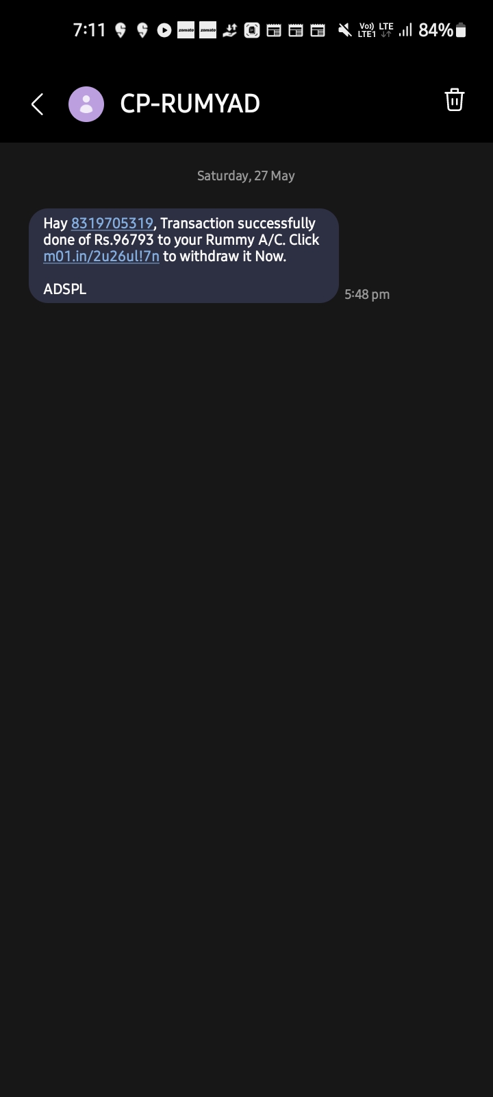 I got this message at 5:48 pm of a link to withdraw money from a site that I didn’t even know