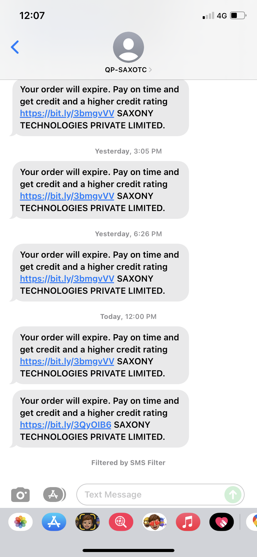 Receiving text messages form Saxony Technology , pay on time I have not taken any loan or anything else.
