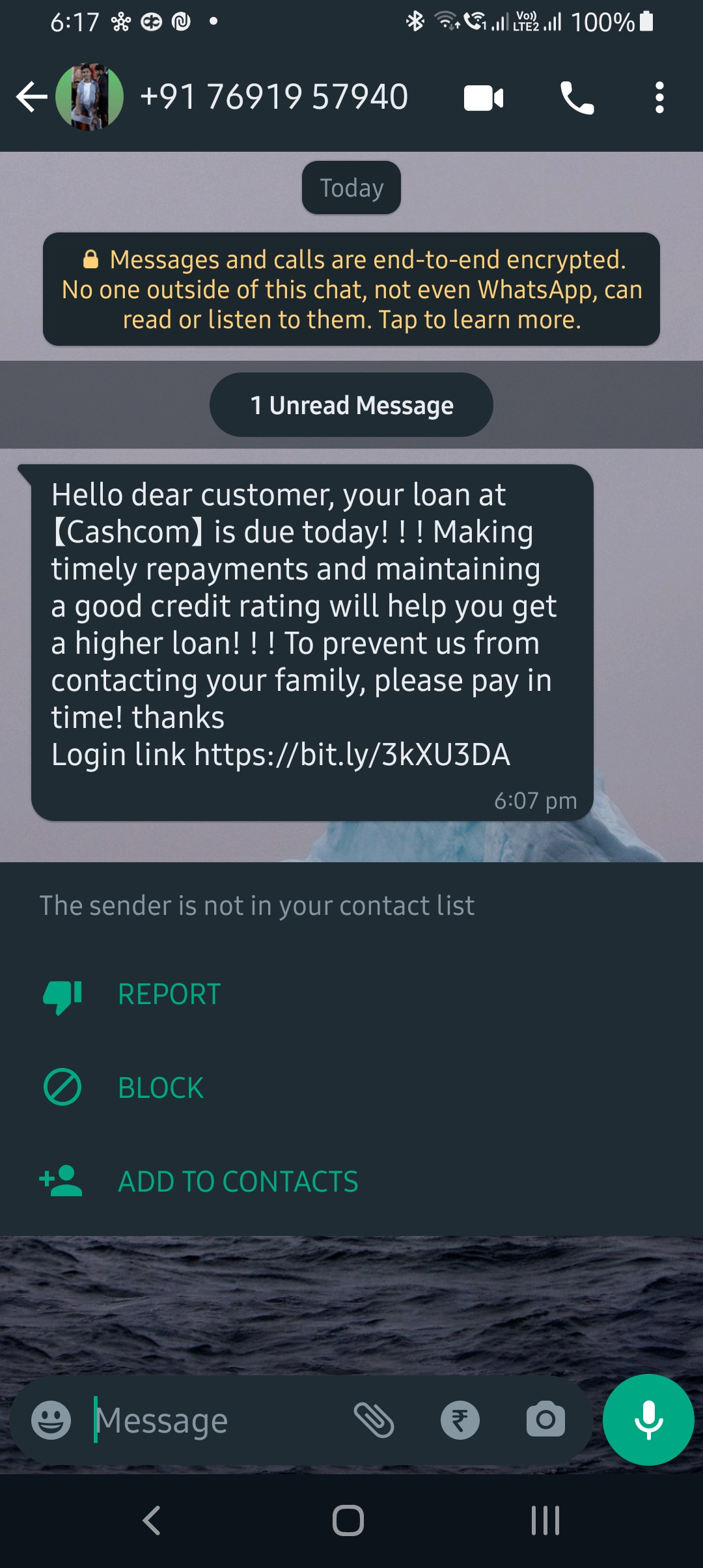 I have started receiving whatsapp messages as well as sms from cashcom asking to pay loan today othwrwise they will contact family members. Now, even whatapp number is not safe.