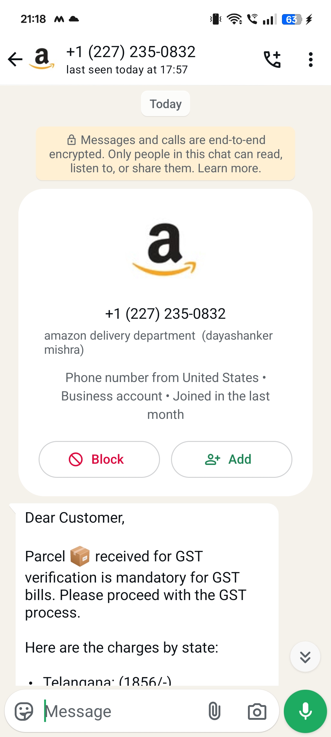 Hello mam you had a parcel which was shipped to your nearest Amazon house which is 32km away from your locationBut mam, GST billing tax verification of your parcel is being done.For this you will have to pay the amount according to your state, Rs 9 will be deducted from this and the other amount will be refunded within 2-3 minutes and the parcel will be delivered within 1 hour.