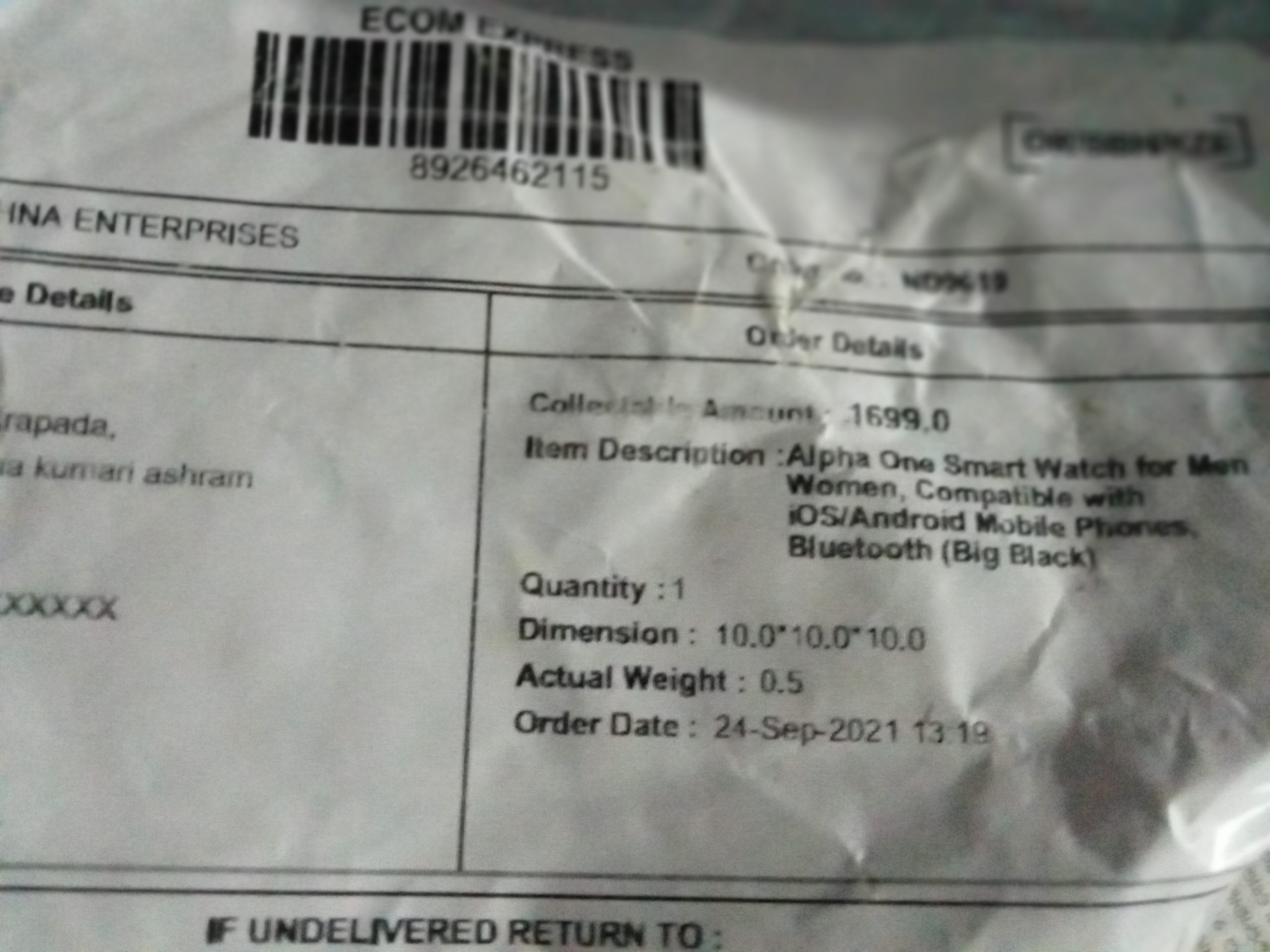I have ordered a alpha smart watch with 1699 but they sent me a toy watch