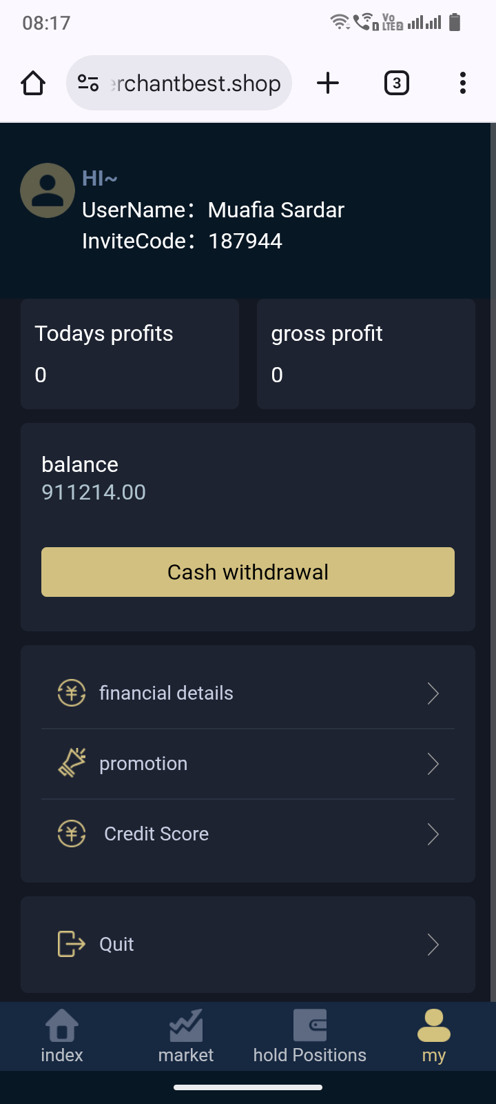 Some one contacted me on WhatsApp and offered online based job I started with them through telegram app and they assigned me some tasks to vote some apps and they also pay me 300 per each task.then they offer me welfaretask prepaid task assured me that I will take profit on my invest ment.i have paid them money 12000 then they again assigned me task then I pay agin and agin huge amount but their withdrawal system showing credit score error and I am unable to recover my amount.i invest my all amount on it and also took others.i almost invest 6 lac on it but they give me more and more tasks for complete credit score now I am very depressed I have no money.now I reported this scame please help me to recovery of my payment thank you.