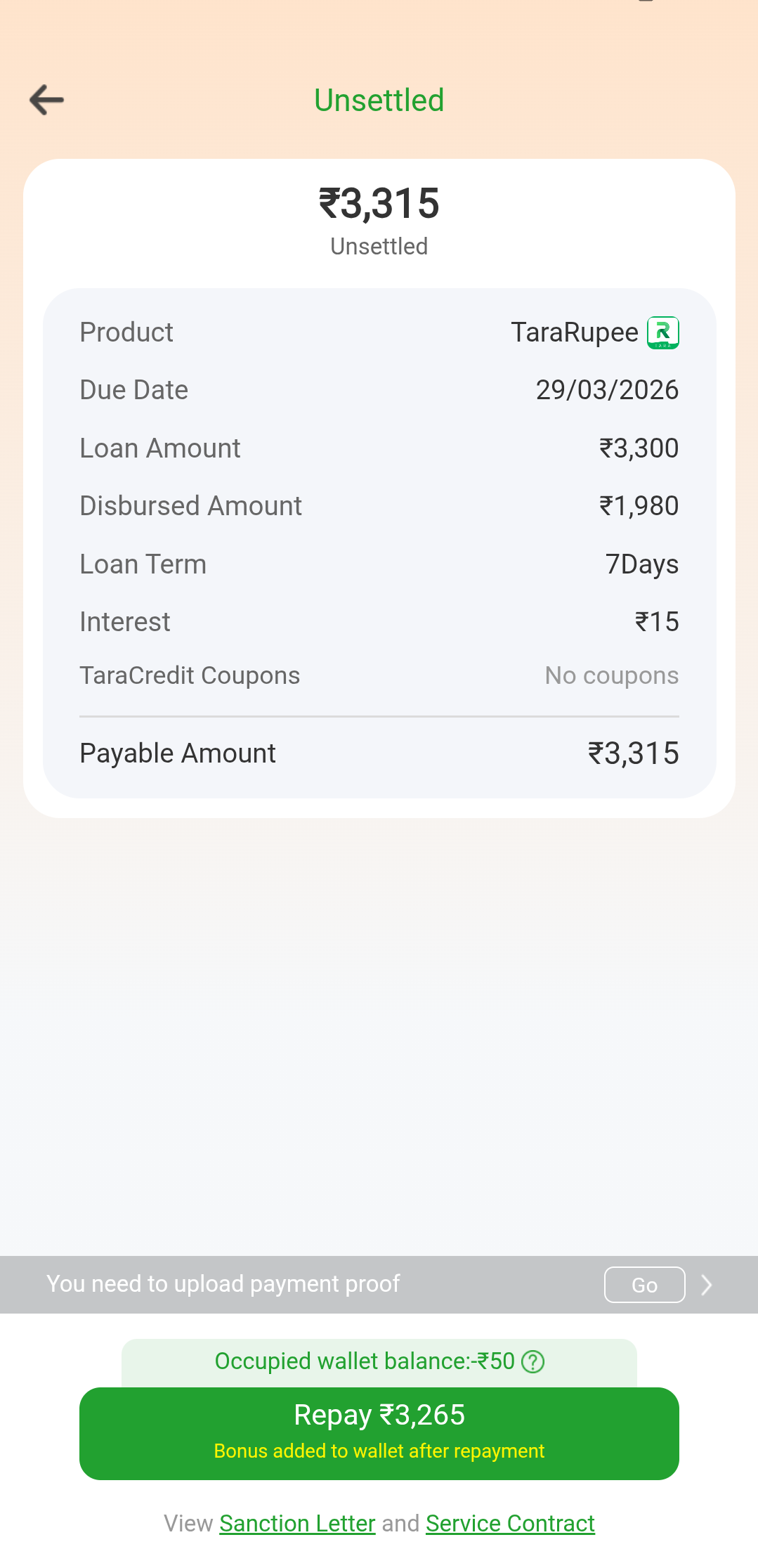 I have already repaid ₹3265 through Paytm to the UPI ID provided by them. Even after repayment, the app still shows the loan as “Unsettled” and continues to demand payment.