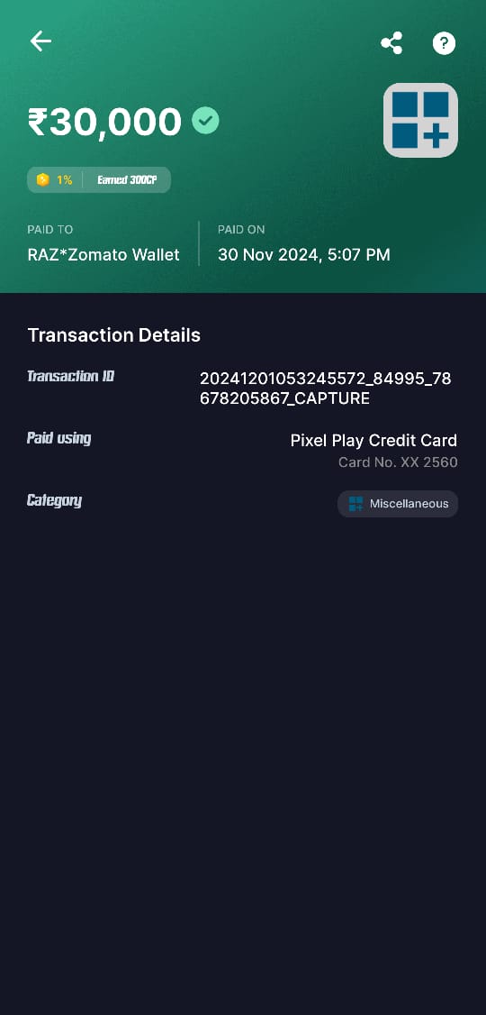 “I am writing to report a suspicious transaction on my [credit card] account. On [Date 24 November ] at [time5:07pm], a transaction of [30000and 5000thousand] was made without my knowledge or consent.