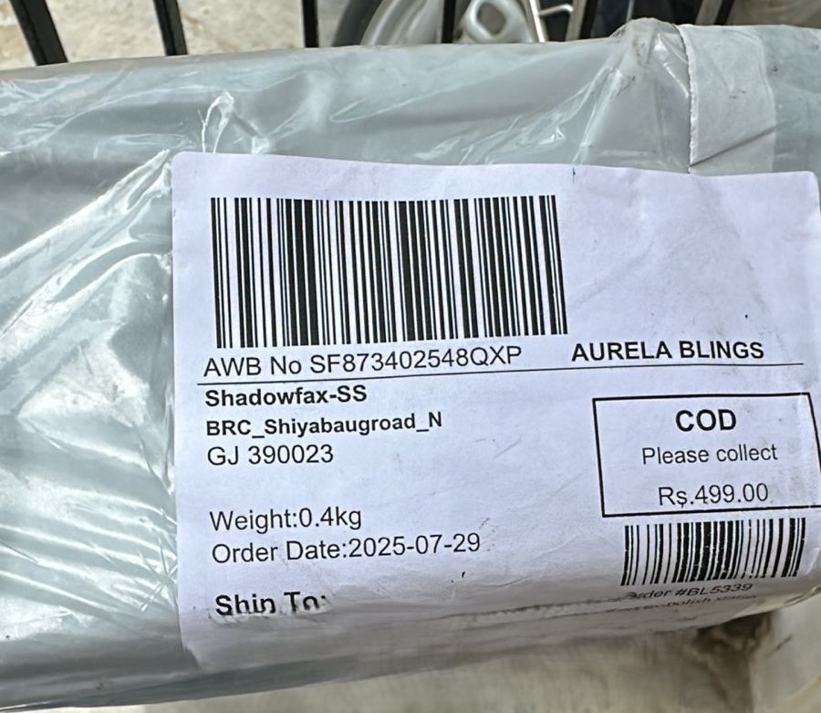 On 06/08/2025, a delivery partner arrived at my residence with a parcel. I was told that the parcel was a Cash on Delivery (COD) order and that it was asked to pay 499/-. The parcel was from a company named Aurela Blings, with the Order ID BL5339.