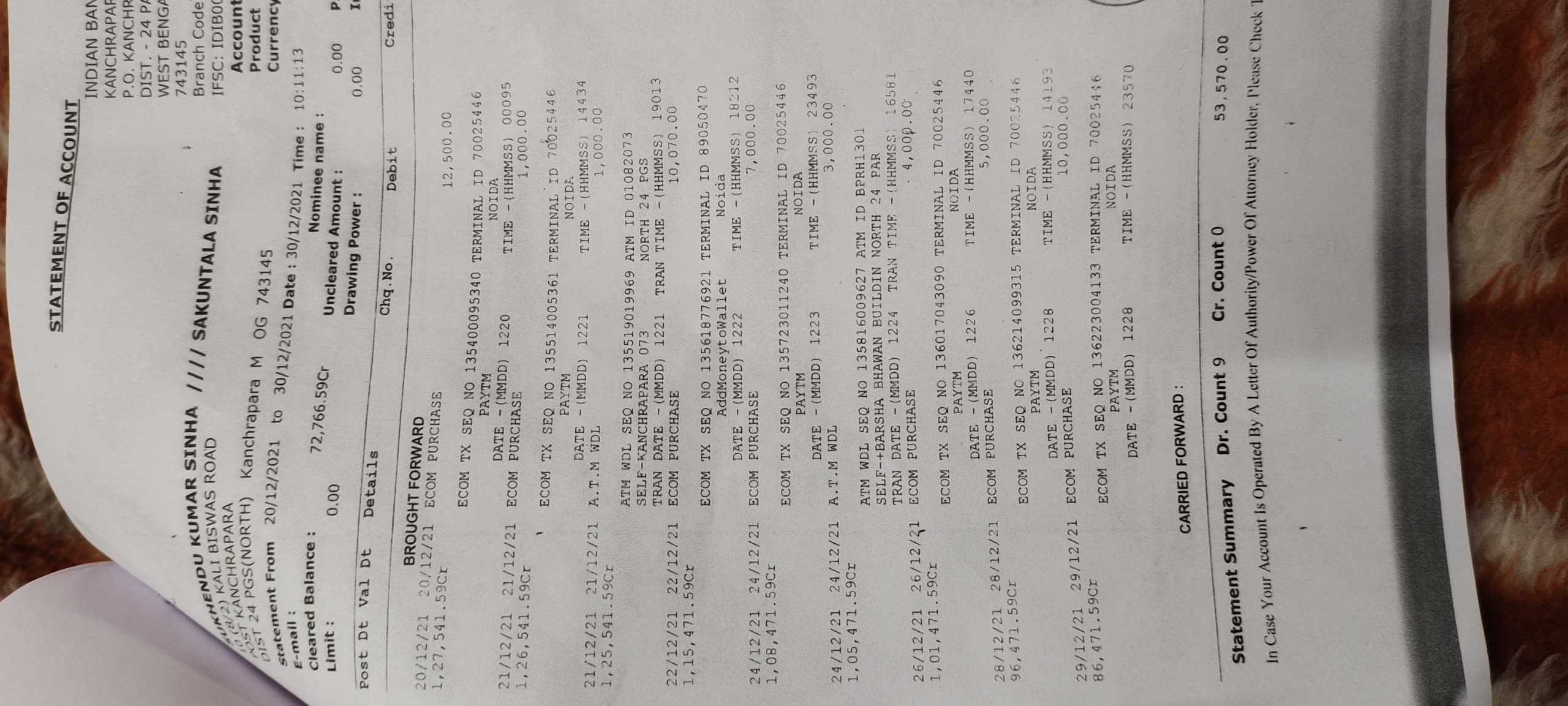 A lumpsome amount approximately 75570/- has been deducted with out sharing any otp and the time period is from 20.12.2021 to 29.12.2021 and that time I didn’t any opt online transaction for myself.