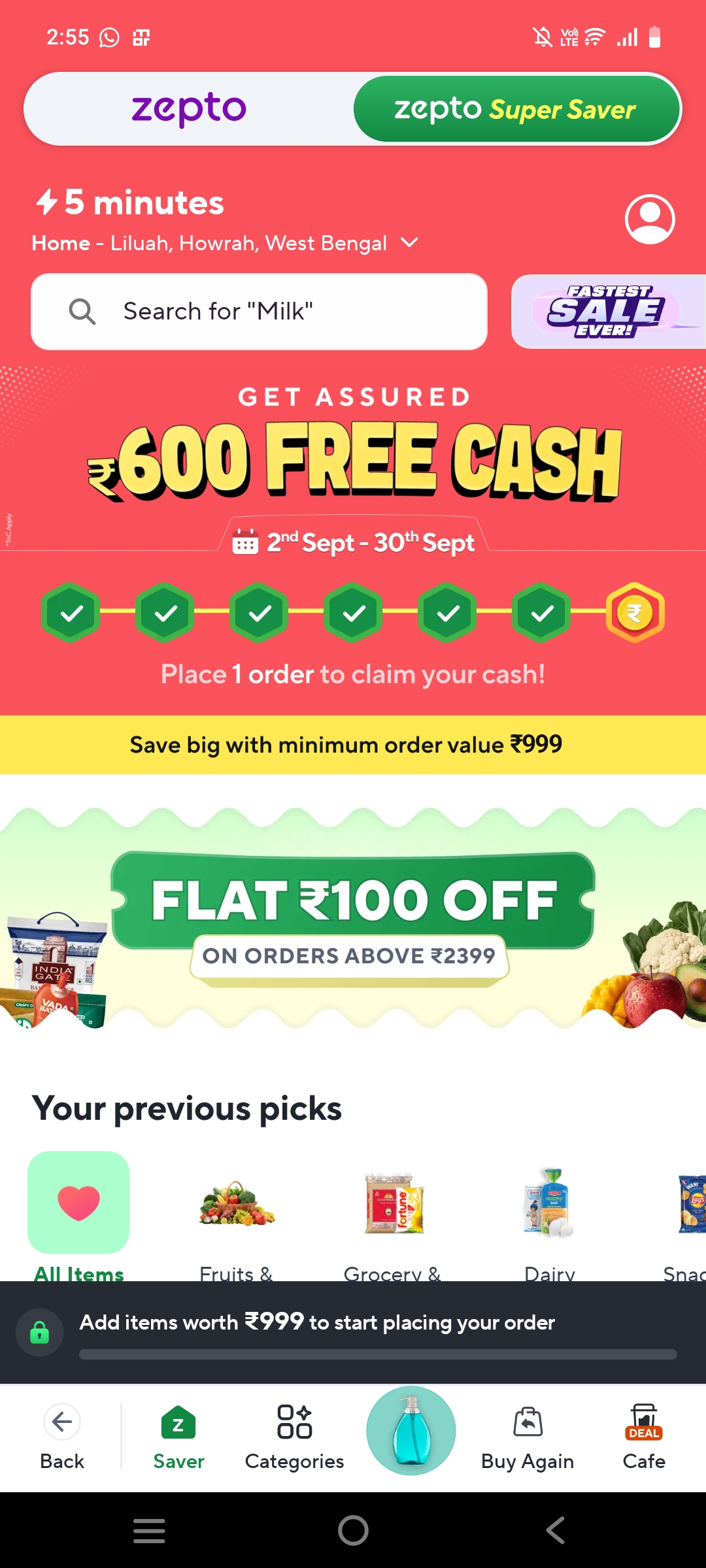 Hello In zepto it was said that place 8orders from one account and you will get free cash worth rs 600 but they are fooling people.i have placed 9 orders still no cashback has been given toh me