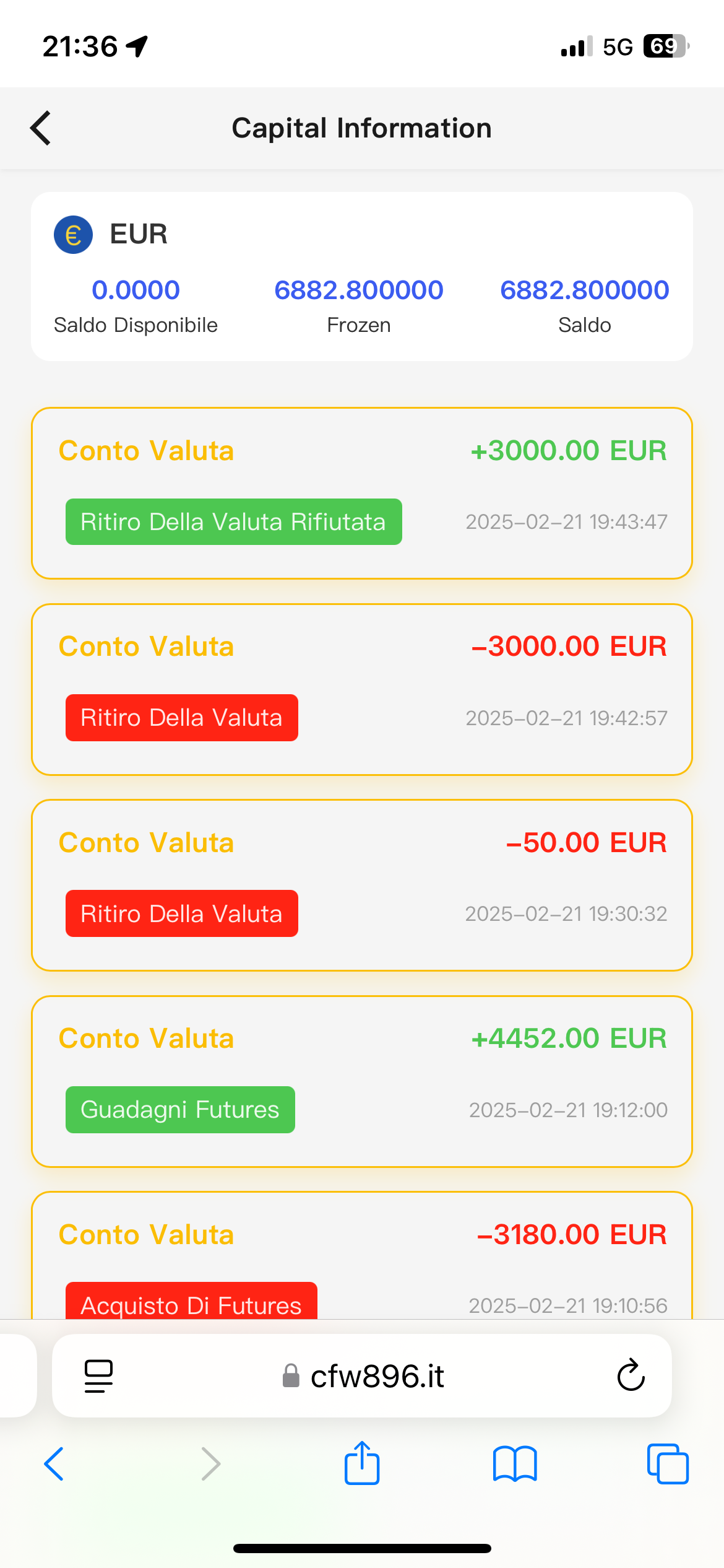 Mi hanno congelato dei soldi presi dal mio conto, e messi in un sito chiamato cfw896.it
