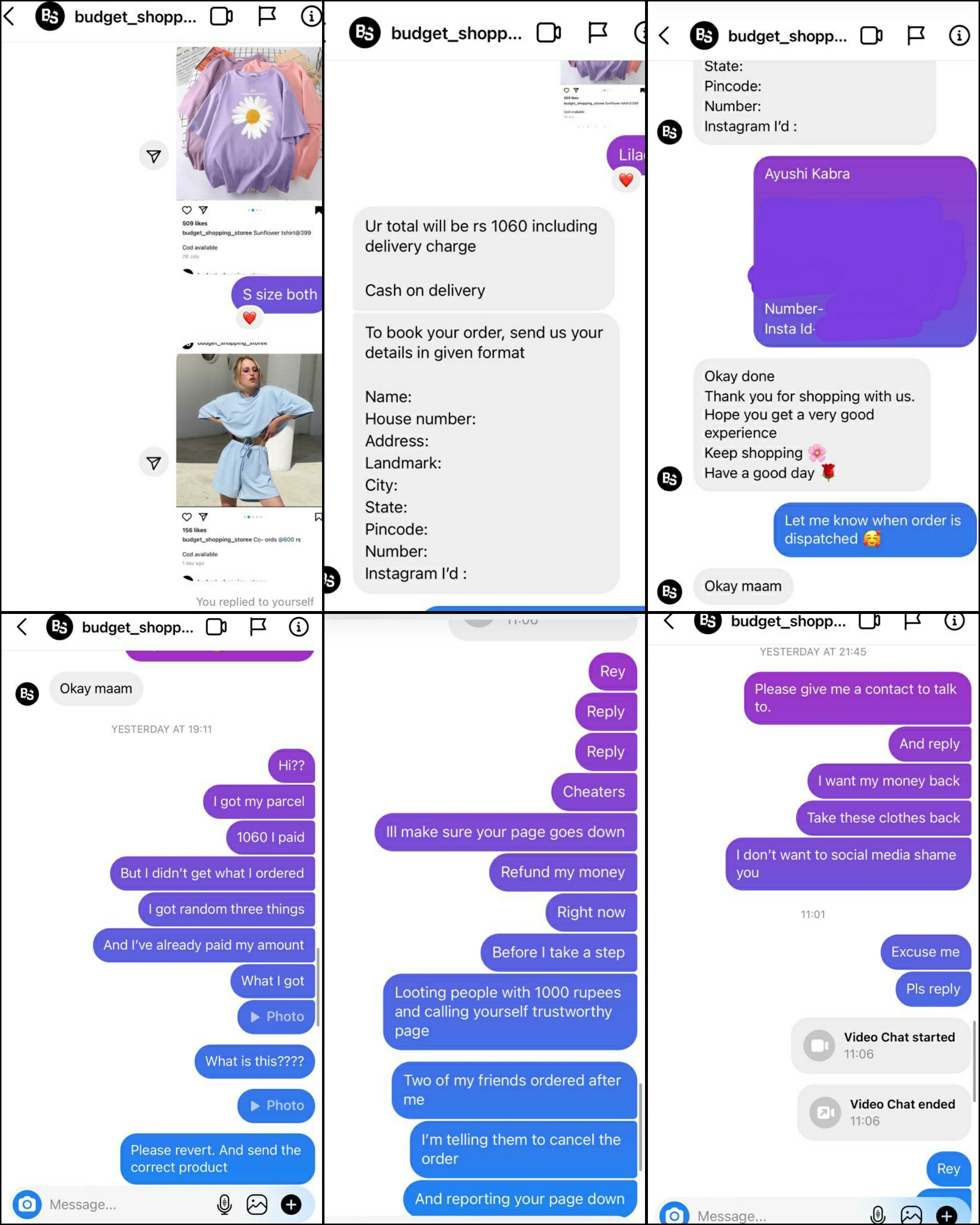 | Name(s) of companies complained against | Budget Shopping store on Instagram. |