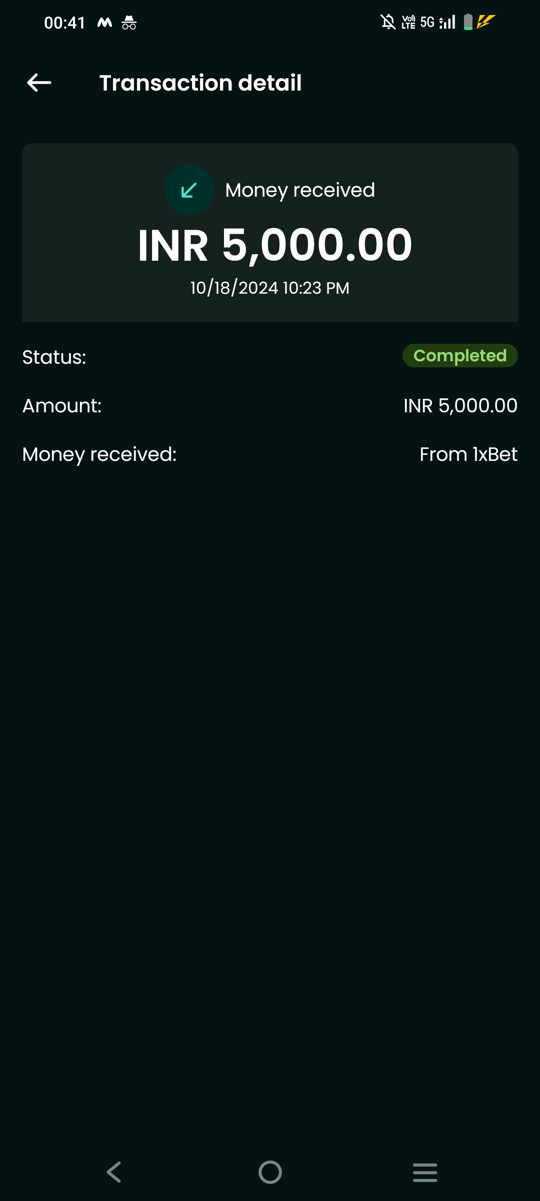 I have created withdrawl of amount 5000 from 1xbet to astropay on 18th Oct 2024, money got credited into Astropay.