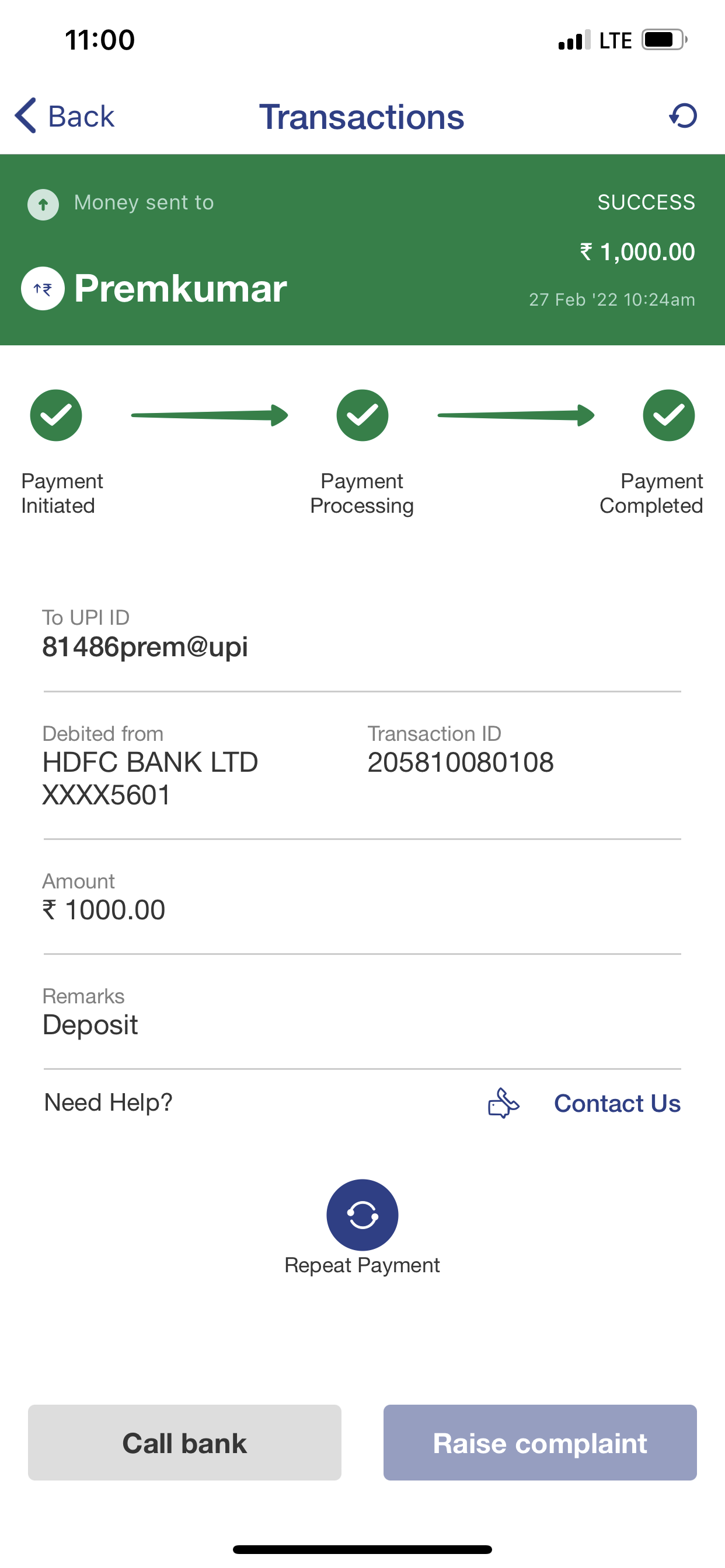 I deposit 1000 Rs today, not yet transferred to my account