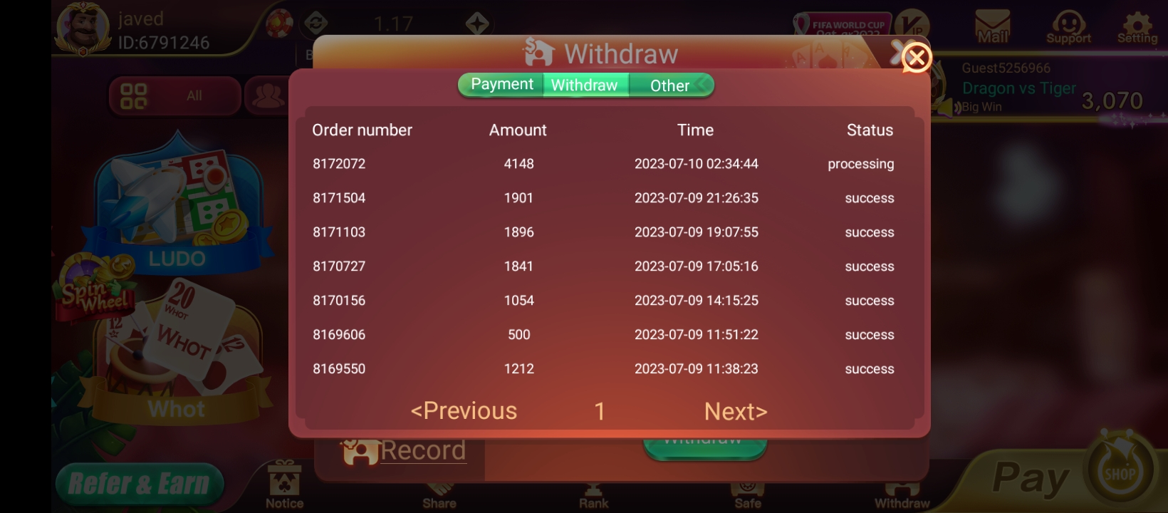 Mera paisa game mai se account Mai nhi aaya 3 din h aajka prossing bata raha hai