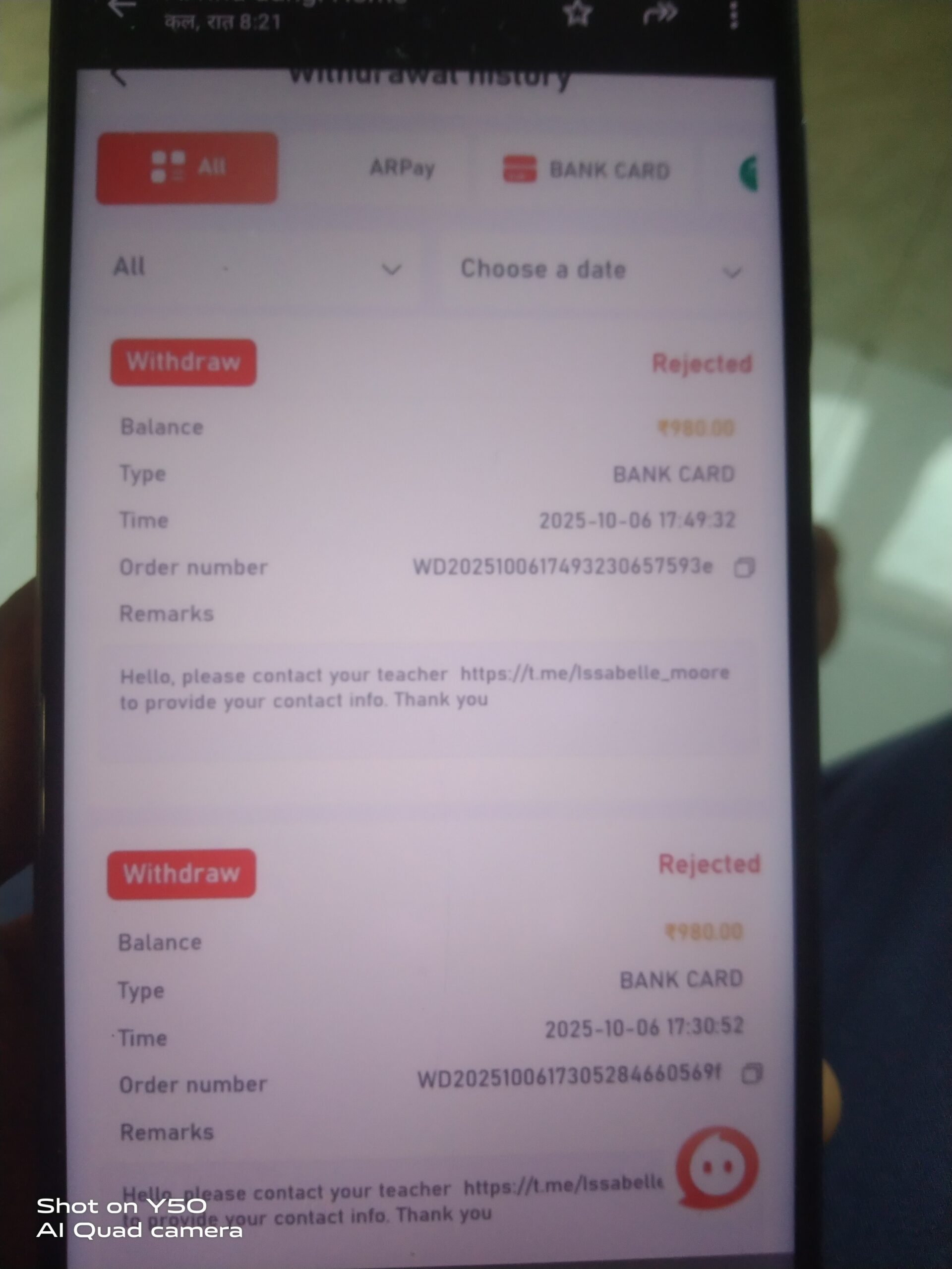 Maine Daman game mein recharge kiya tha ₹500 ka aur FIR game ko Khel kar ₹980 kar liye per jab Main withdraw kar raha hun To vah har bar reject kar rahe hain ya result ho raha hai
