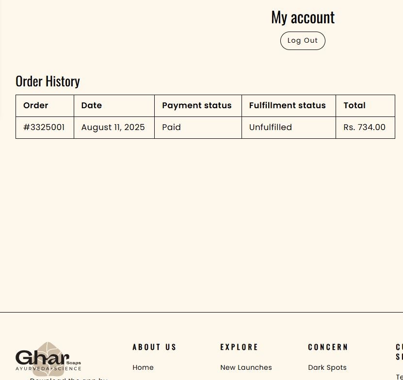 My order number is #3325001, It is a prepaid order, My order is showing no status. web address https://www.gharsoaps.shop/