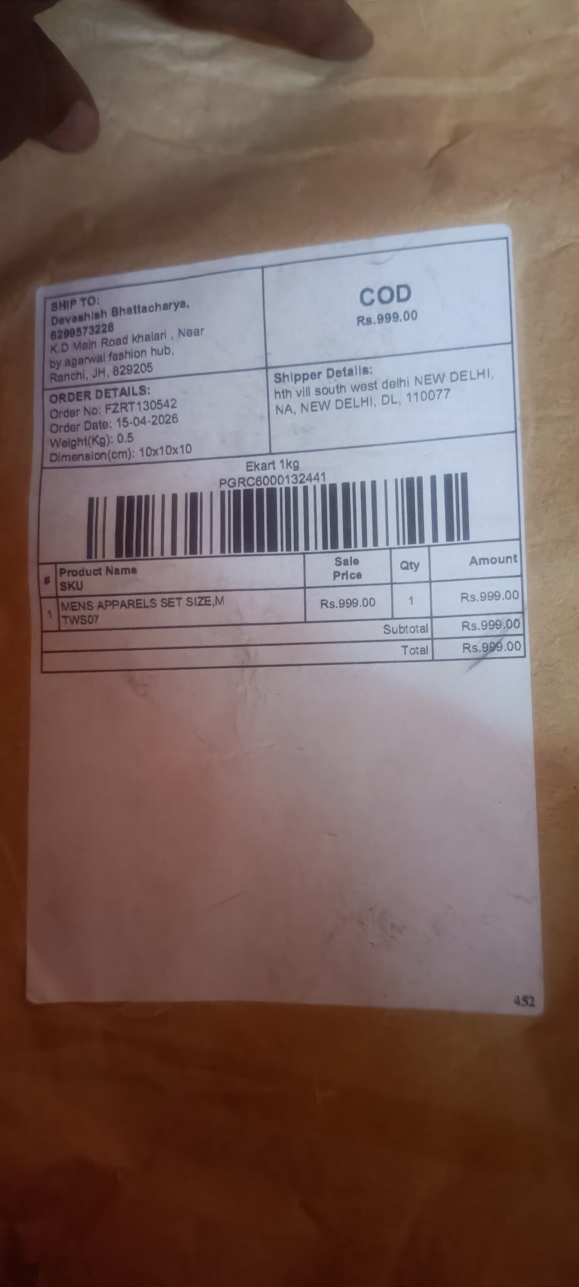 I had ordered 4 shirts for 999 but they have sent 2 t-shirts for 999, these people are cheating people.