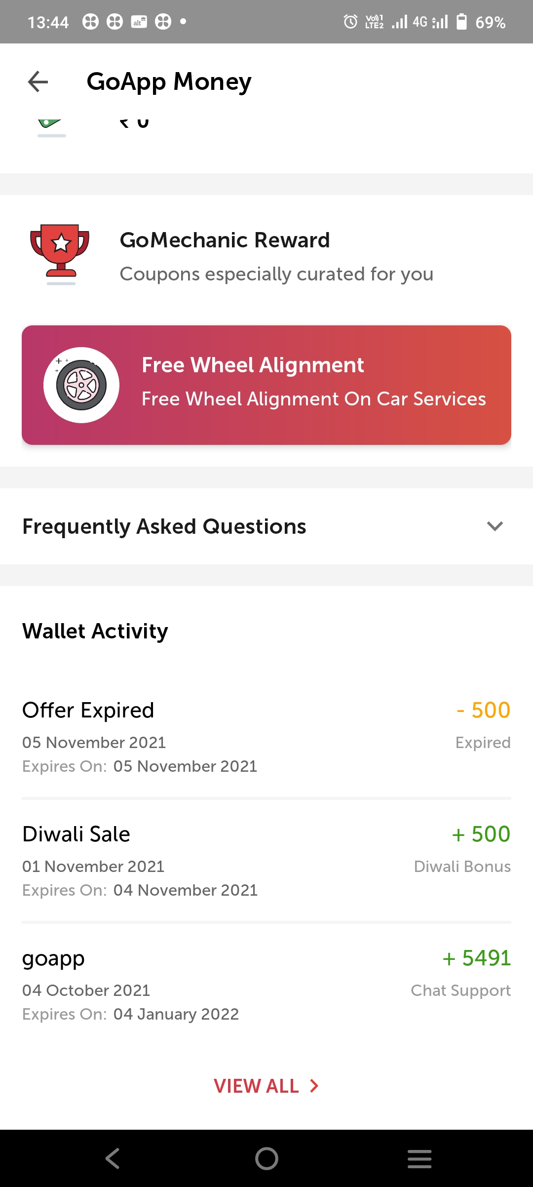 I am very disappointed by services of go mechanic. I have 5491 cash money in my app but not it is showing zero while I want to use it.