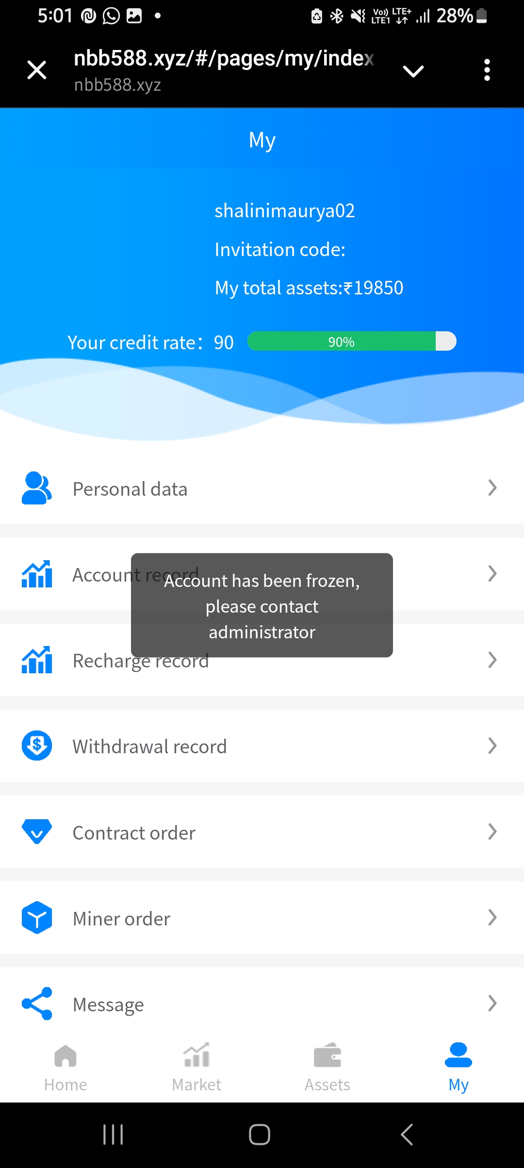 There was a third party who made me to invest but when it came for refund they froze my account and asking me for 20,000 rupees to unfreeze