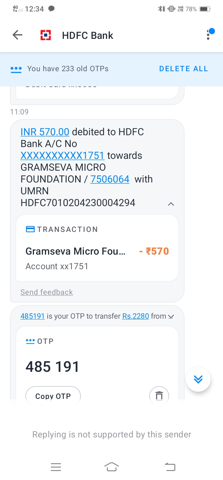 I didn’t take any loan from gramsewa foundations but they deduct 570 from my hdfc bank account