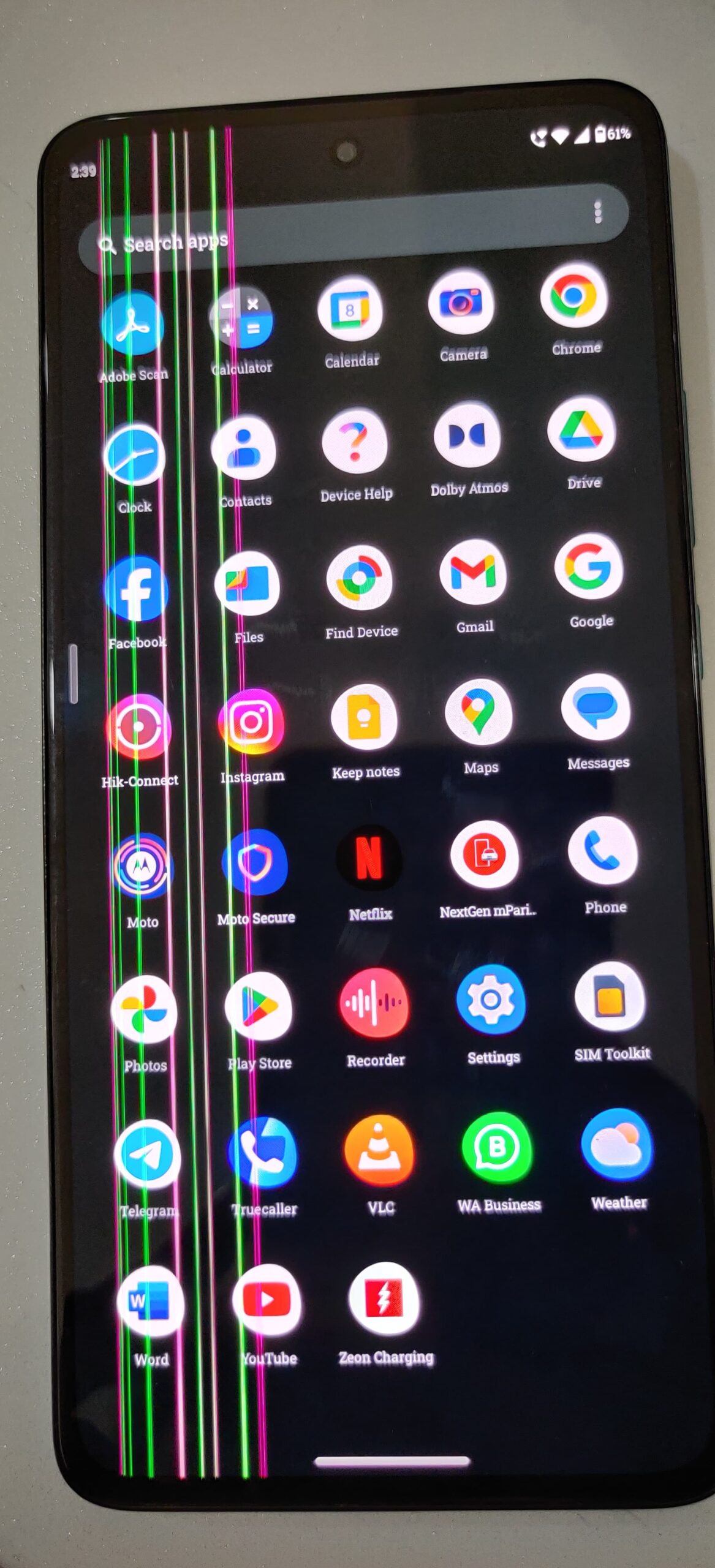 i bought moto edge 30, on 28th July 2024 at night 11.30 pm suddenly green lines appeared on my phone. it appeared after software update, there is no physical damage to my phone. by the date my warranty period got expired. i took my phone to authorized service center, they said as warranty period got expired it will be charged almost Rs.8000/- to Rs.12000/-. i am not willing to pay the amount to change the display because this is not caused from my side.