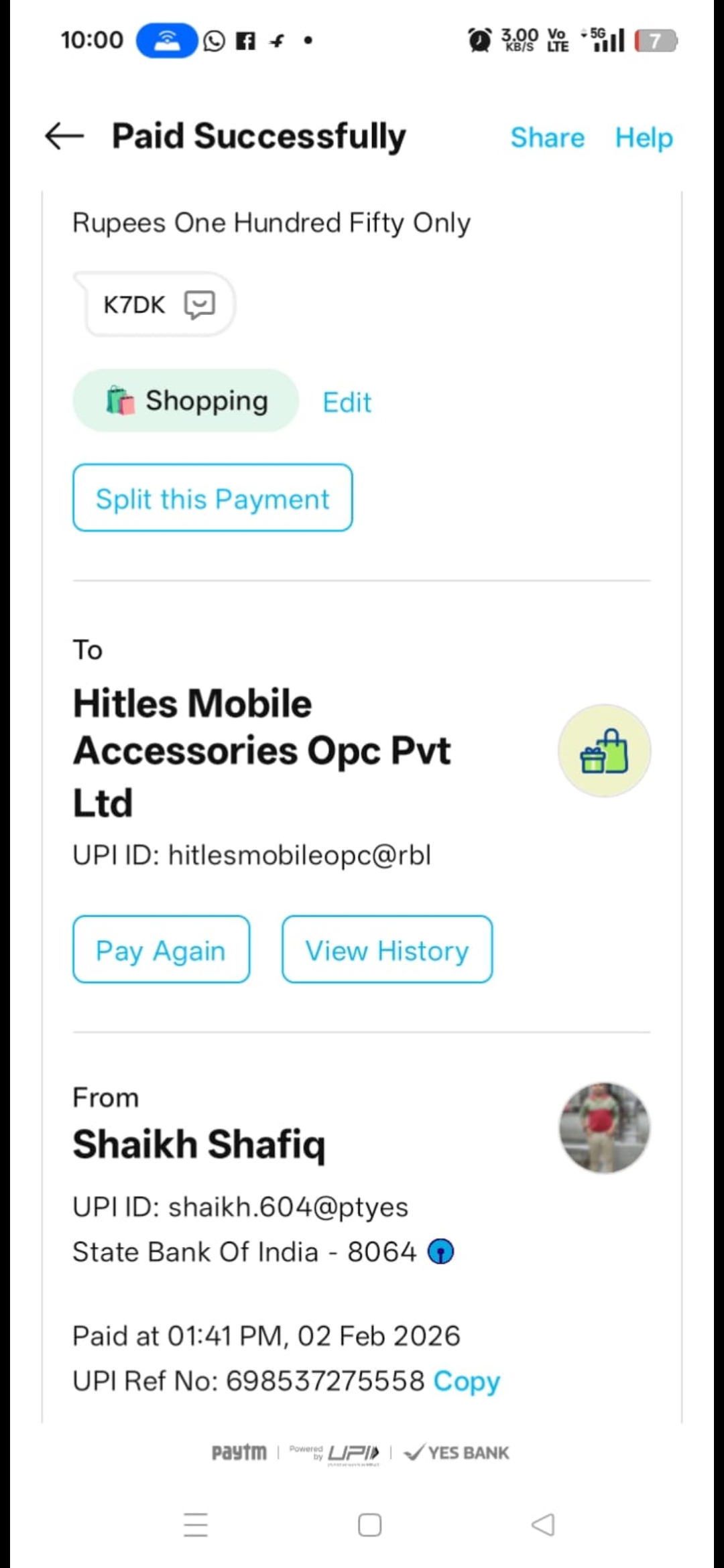 I’m add money yesterday 2 February 150 rupees but not came in my account I’m doing complain but his saying me my money in processing please give me my money back Recharge number 7238621804925644296 UTR 698537275558