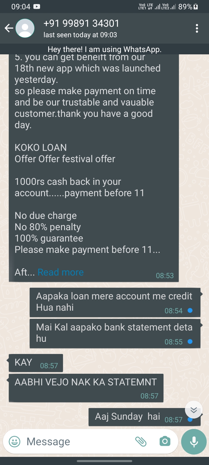 I had applied for loan on koko loan app but not approved and not credited in my account but they ask me for repayment