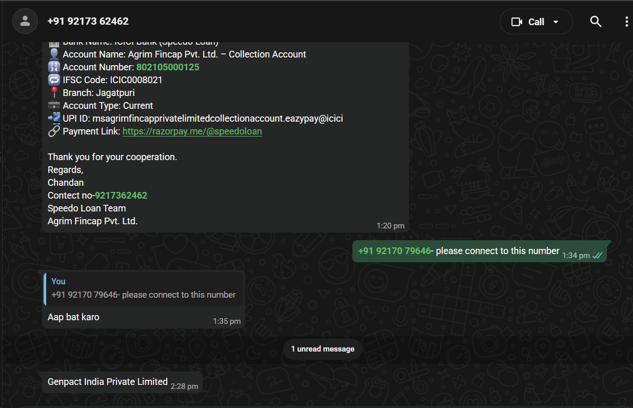 | Name(s) of companies complained against | Speedo Loan (Agrim Fincap Pvt Ltd) |