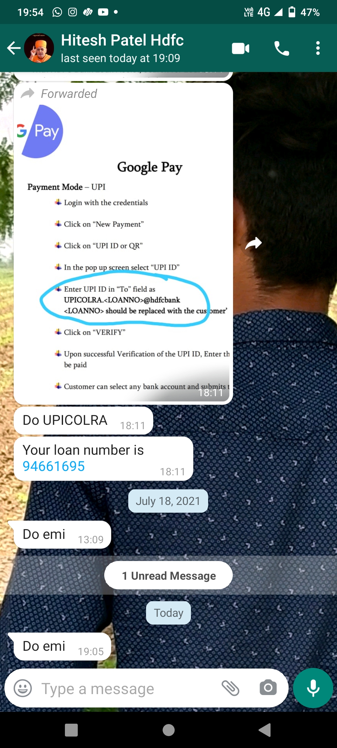I Rambilas Sharma bought a vechile on loan and due to lockdown and these critical situation my salary was cut then also I was paying and now these month I can’t pay so I told them I will pay it next month together, then the recovery agent (hitesh patel) was like why do you take loans if you can’t repay and he don’t have any rights to contact me on another number and whatsapp then also he is contacting me on that plz take care.