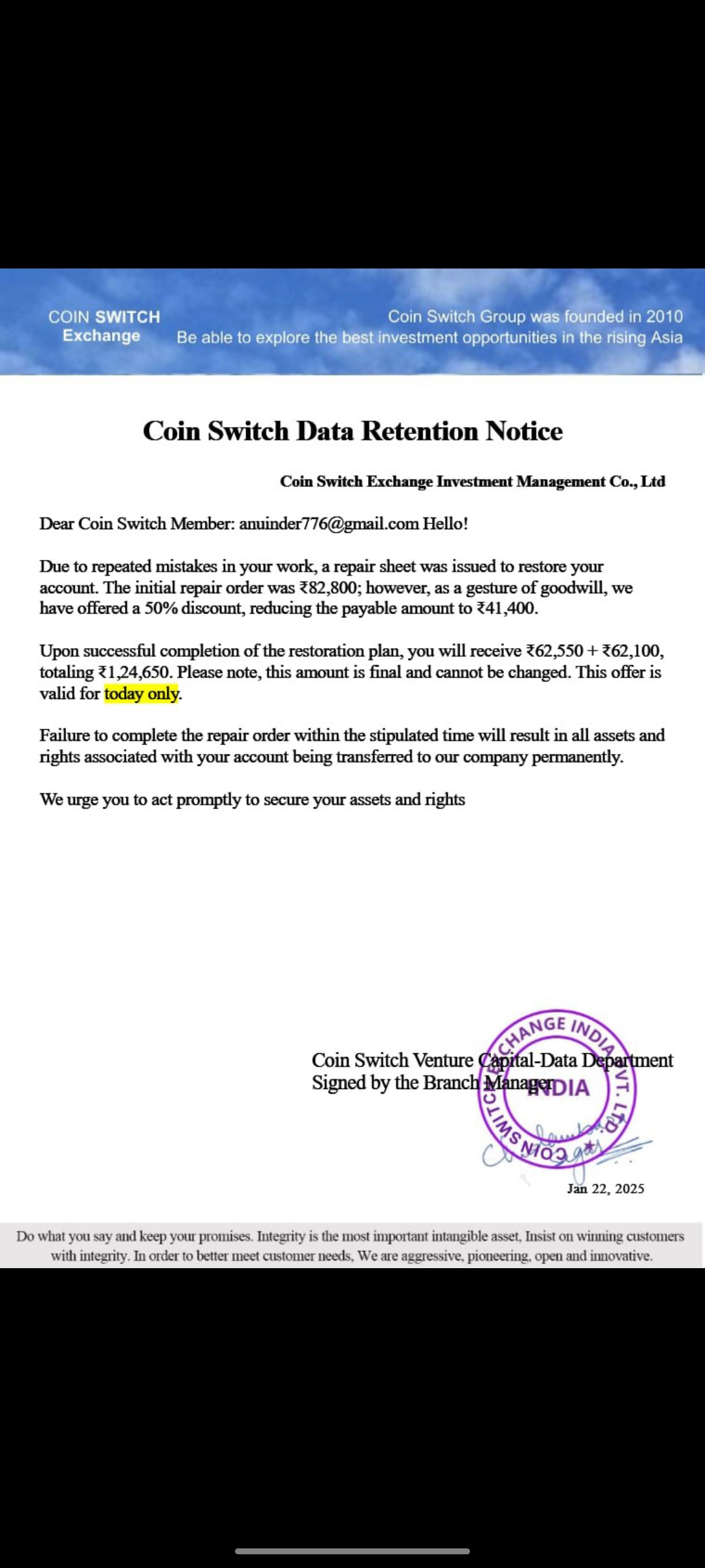 He was telling me deposit the ammount 41000/- and I have already deposited 38000/- and 12500/- and they are again again force me for the deposit the amount for returning my deposited ammount I have denied to deposit the ammount they are delete the ammount . They are different types of account on telegram for deposit the amount … Plzzzzz help me kindly refund my amount .. thankful to uh