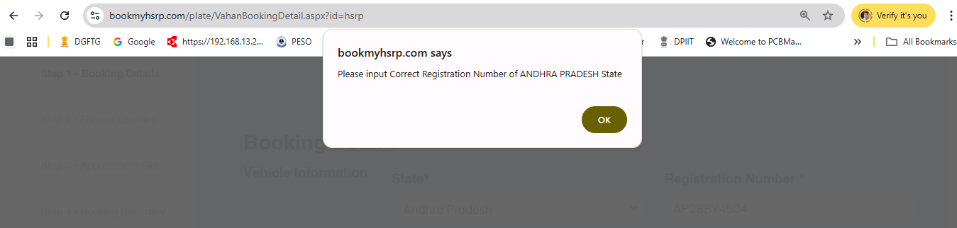 Now i am trying to book High Security Number Plate but asking to enter valid number plate